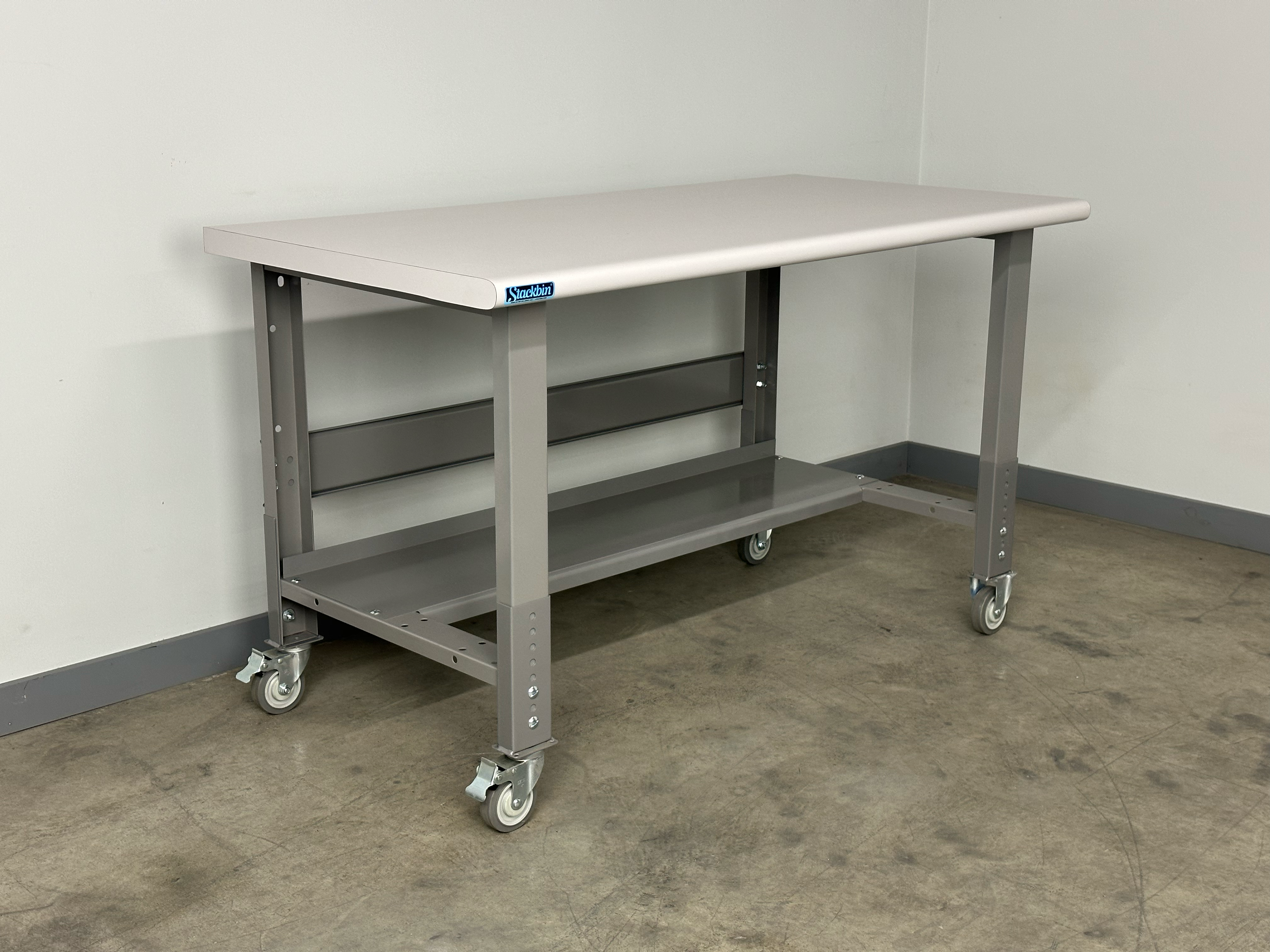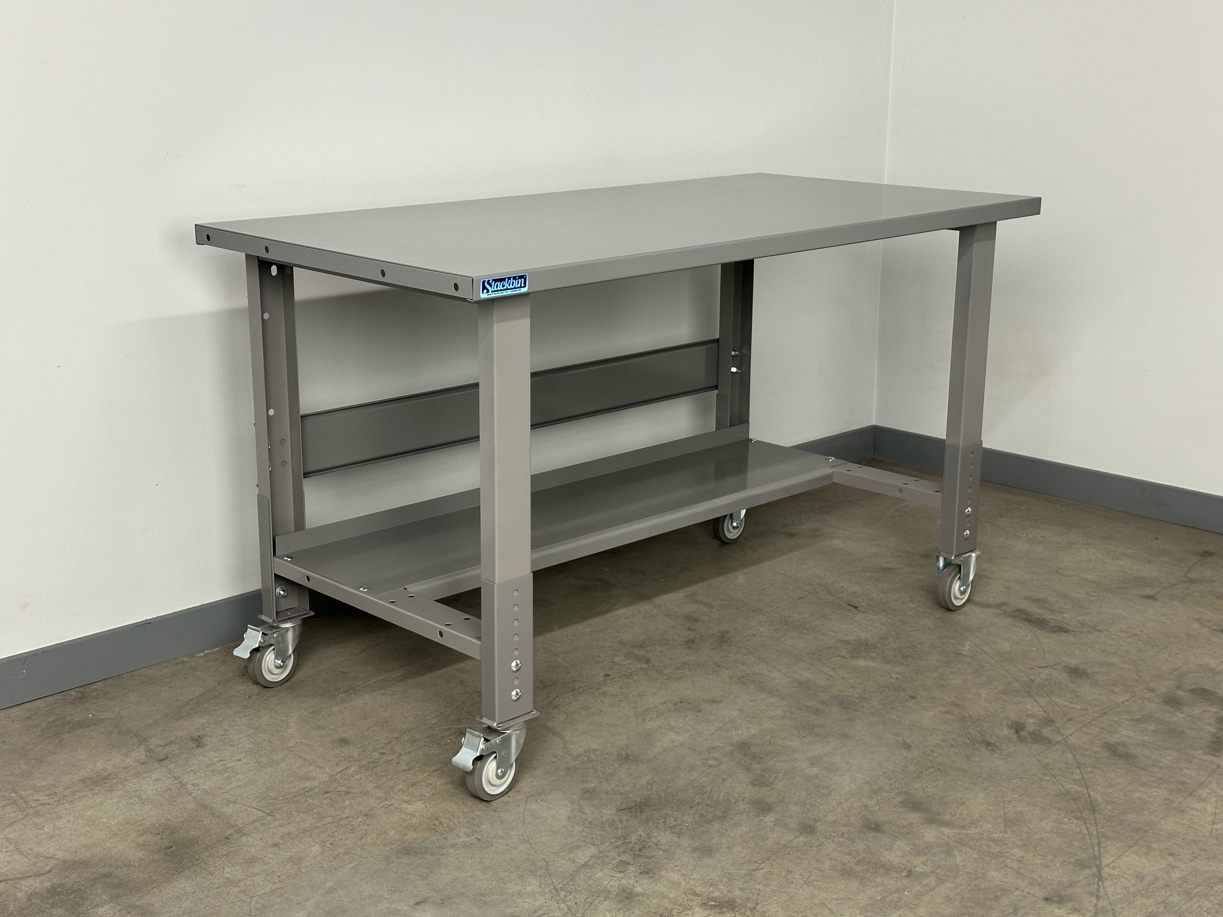 Upgrade your workspace with a heavy duty workbench built for mobility, stability, and everyday performance. The 3512 mobile workbench features robust 14-gauge, fully arc-welded legs that deliver long-lasting strength for demanding tasks in the workshop, garage, or industrial floor. With rugged rubber-over-steel casters rated for substantial loads and welded to adjustable leg caps, this portable workbench moves smoothly and locks in place when you need it to stay put.