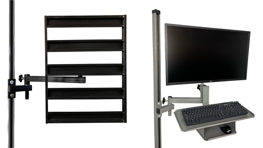 Stackbin Articulating Accessories redefine the 'reach zone' by putting the workspace in motion. Engineered for industrial-grade durability, our heavy-duty swingarms serve as a modular platform for everything from tablets and CPUs to accessory panels that keep small parts and hand tools exactly where you need them. The ability to pivot and lock your equipment into place eliminates repetitive strain and maximizes efficiency. Upgrade your system with our poly-bearing pivot points for enhanced longevity and a smooth, professional feel that withstands the rigors of multi-shift industrial use.