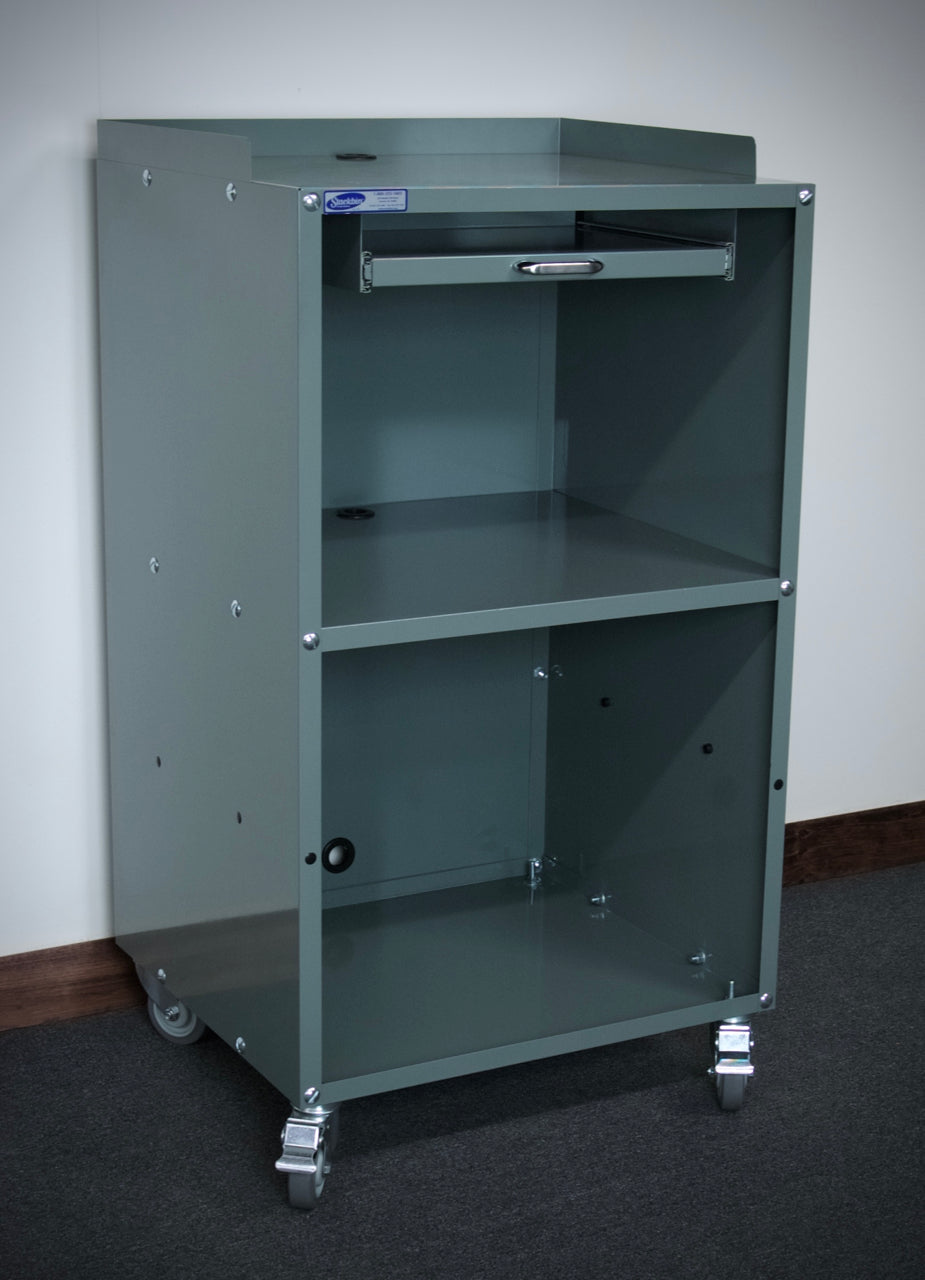The cabinet comes standard with a durable baked enamel finish. Custom color options are also available to match your specific workspace décor or branding requirements. Contact us to discuss custom color selections.