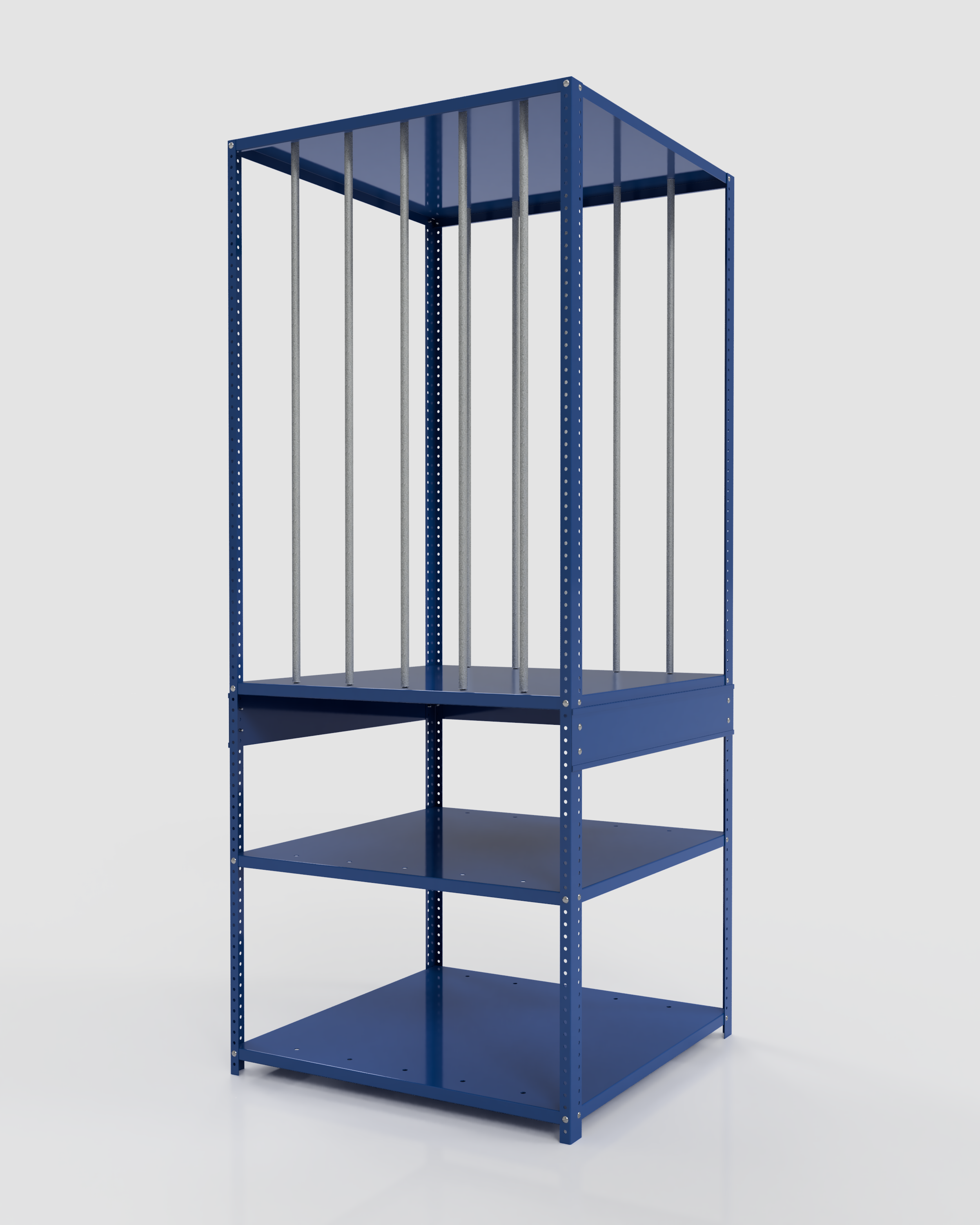 - Vertical Sheet Metal Racks: 6 storage bays with 49" clear height