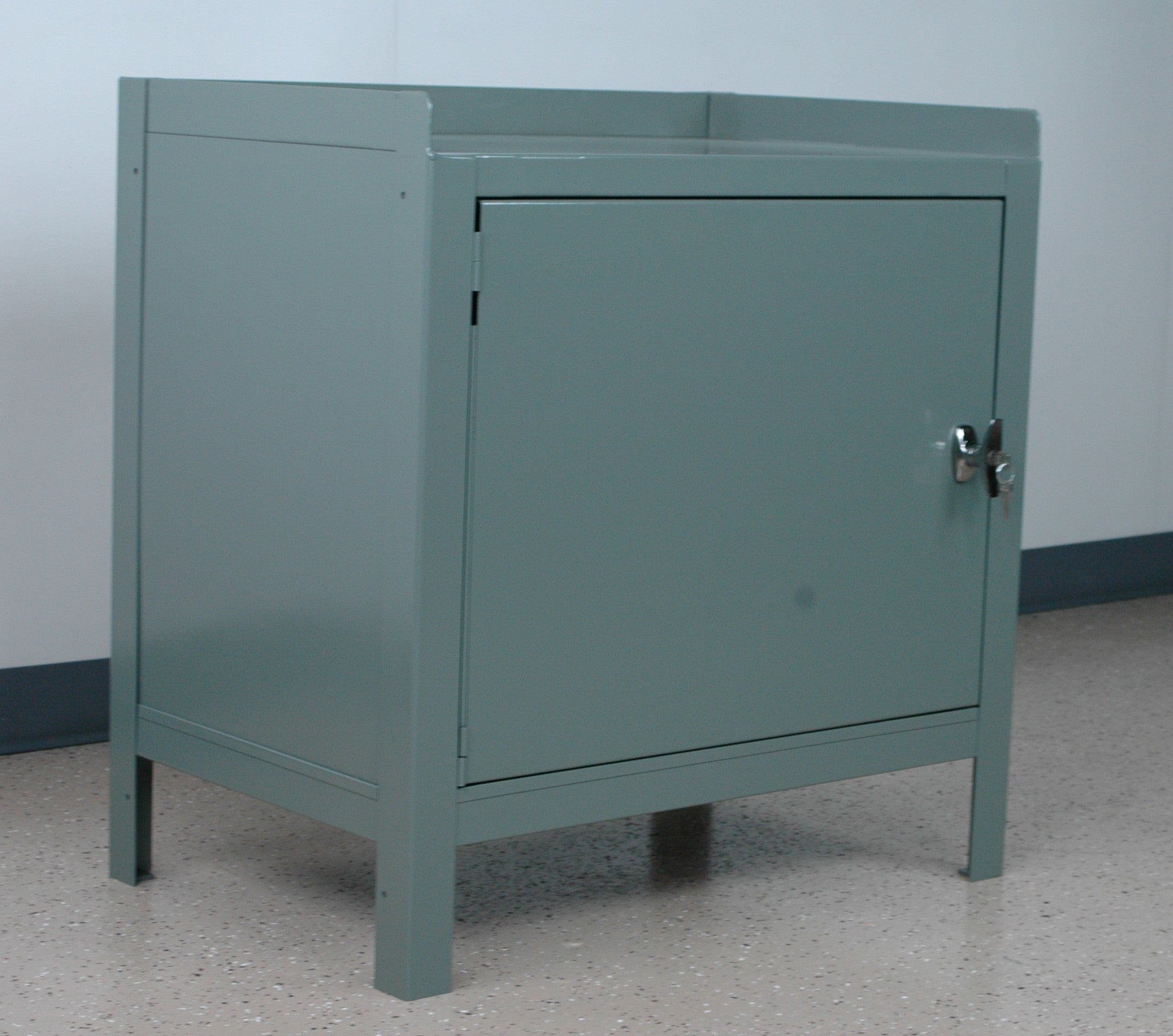 Designed for versatility, the lockable T-handle door keeps tools and supplies protected, while the cabinet accepts a range of add-ons to match your workflow. Choose casters for mobility, add drawers or bin rails for organized storage, and install an optional middle shelf at any time. The durable baked enamel finish resists wear, with custom colors available to match your shop or brand.