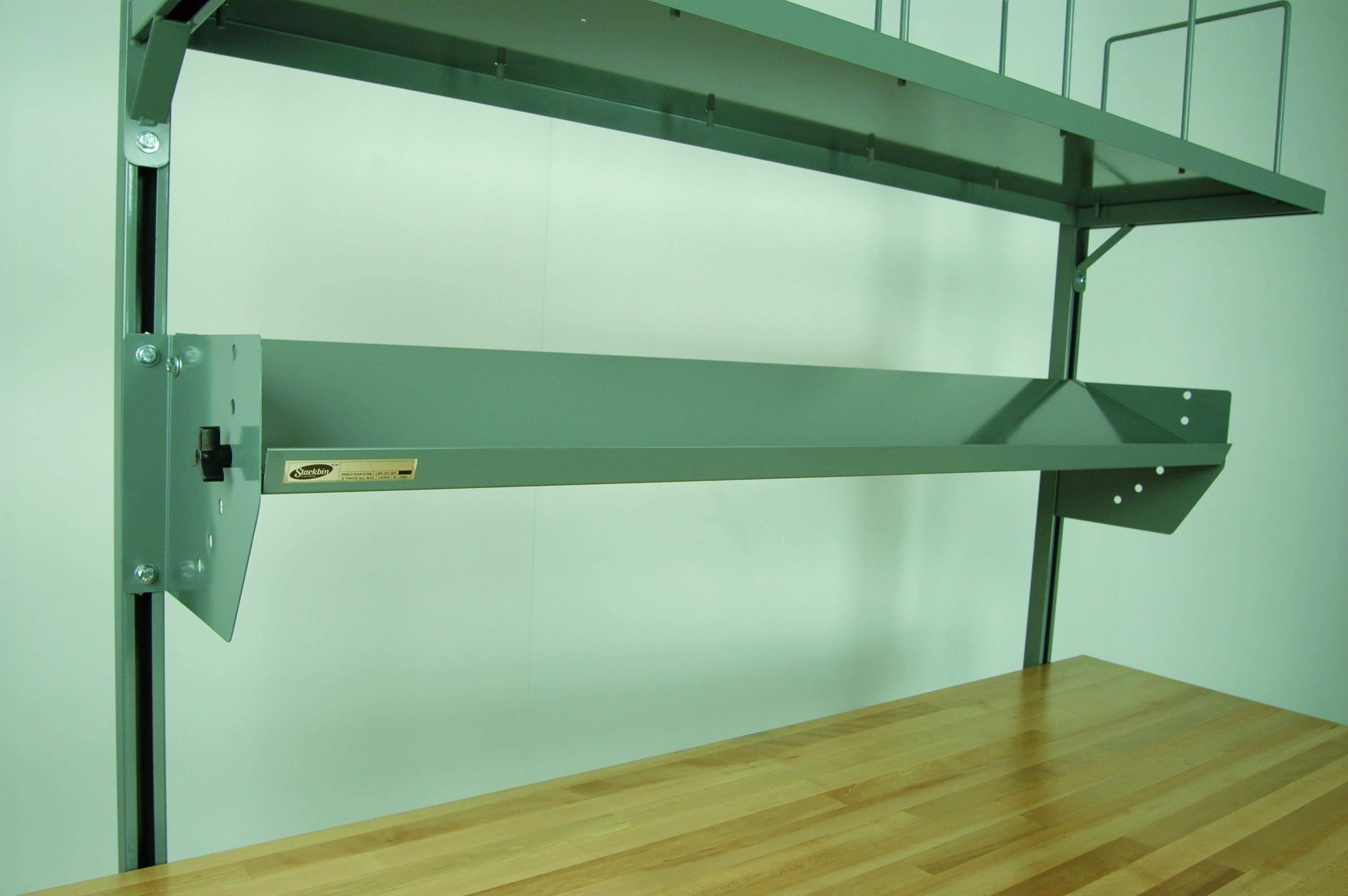 Maximize your workspace efficiency with this versatile tiltable shelf that brings premium functionality to your heavy duty steel shelving system. Constructed entirely from durable 16-gauge steel components, this sturdy metal shelving solution mounts seamlessly to any work table equipped with an overhead structure, making it an essential addition to your adjustable industrial shelving setup.