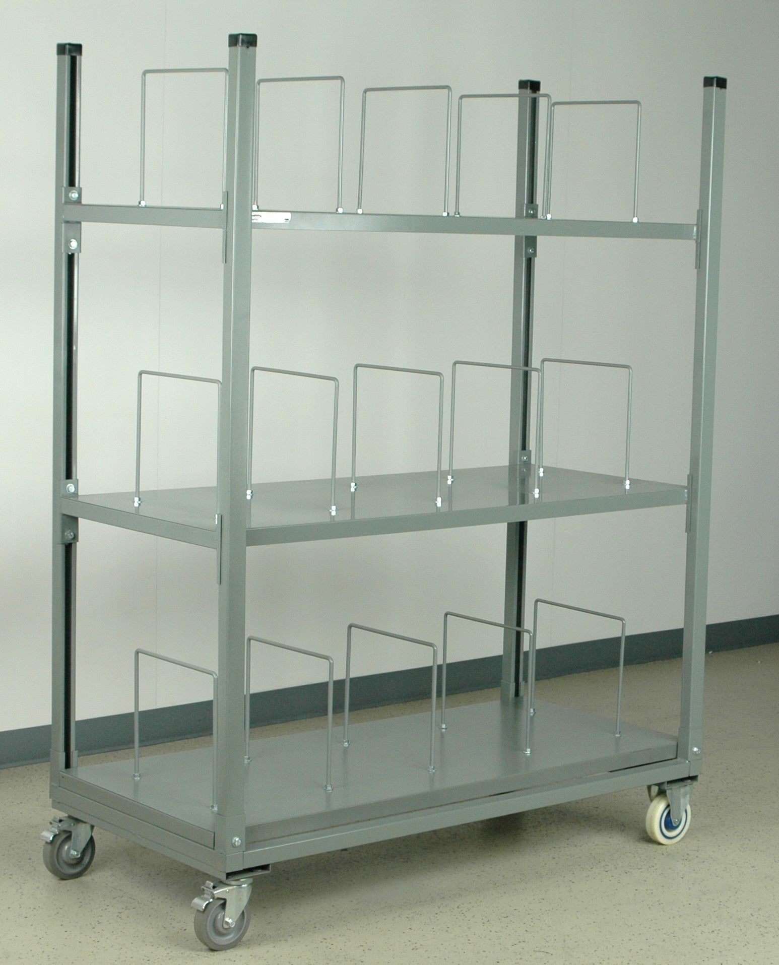 Streamline your shipping department operations with this versatile 3-shelf mobile carton rack, engineered from heavy duty steel shelving for maximum durability and organization. This sturdy metal shelving unit is specifically designed to store and organize broken-down cartons of all sizes, making it an essential addition to any busy warehouse or shipping facility.