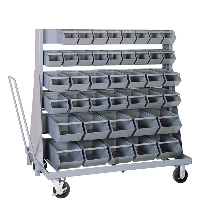Streamline parts handling and restocking with the Mobile Bin Unit (MBU), a mobile, modular, and expandable storage solution built for demanding industrial environments. With a robust 2,400-pound load capacity and a compact, easy-to-maneuver footprint, this unit delivers the durability of a heavy duty steel shelving system in a mobile format—ideal for restocking programs, kitting areas, and fast-paced production lines.
