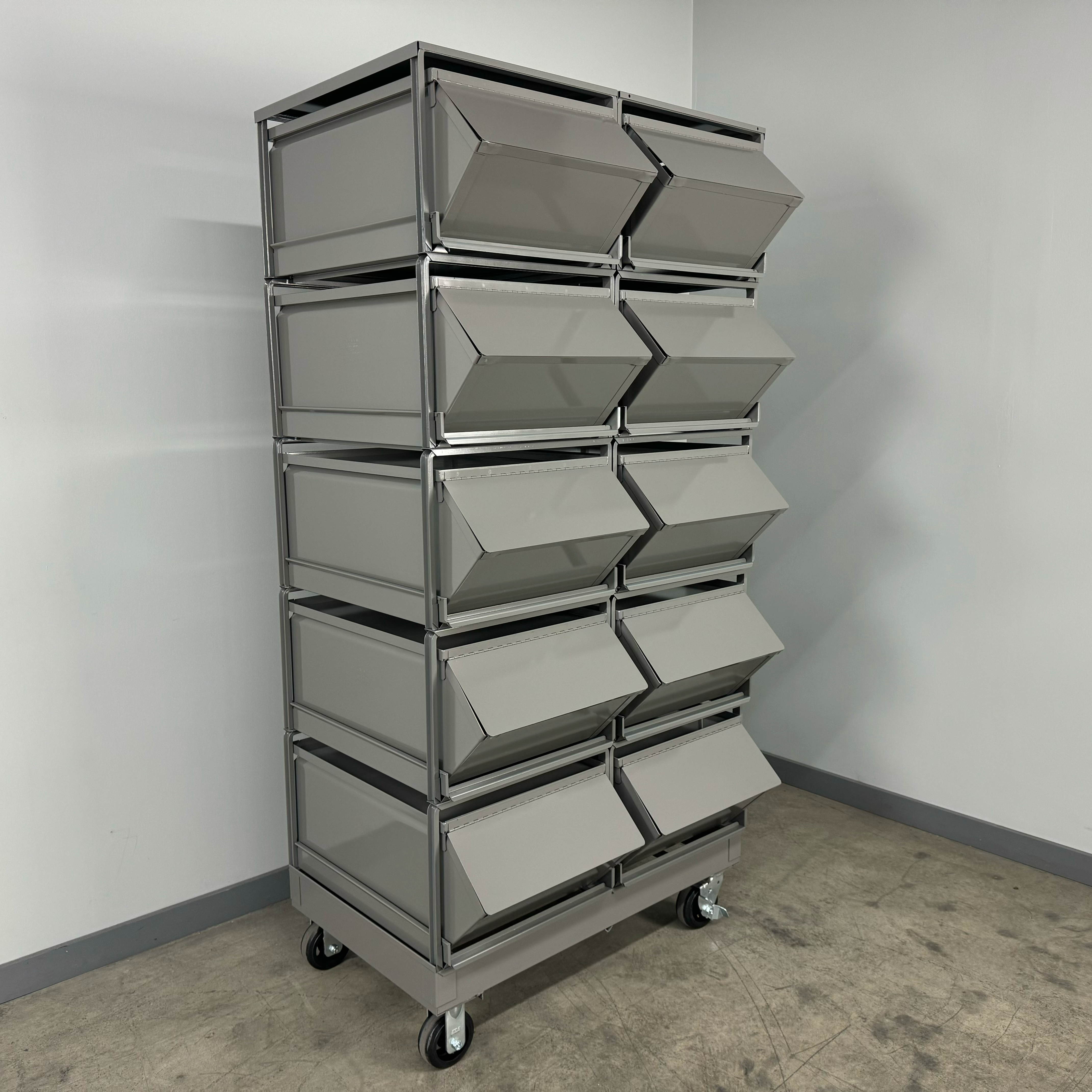 Stackbins Modular Metal Storage Units with Roller-Bearing Stackracks