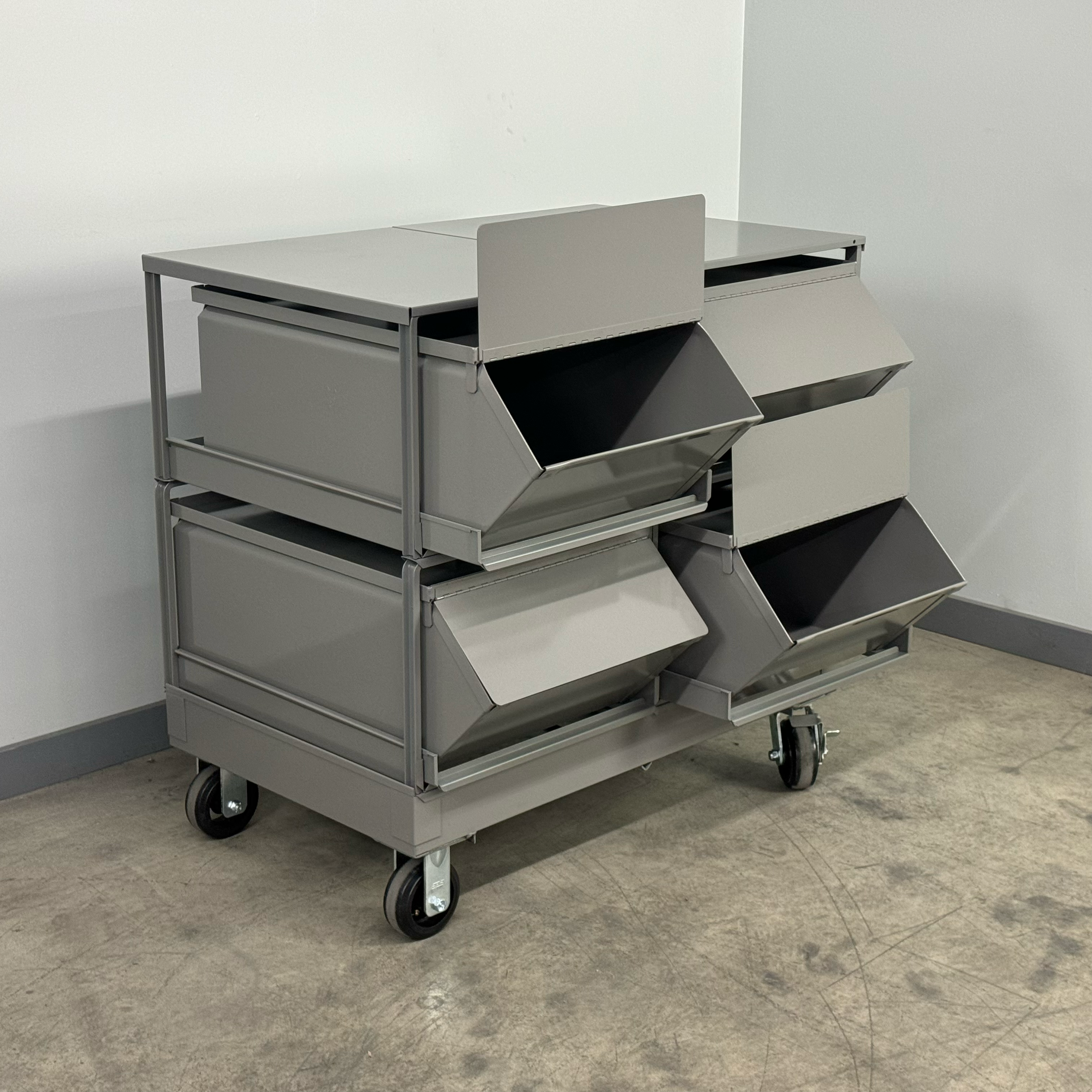 - Heavy-duty parts bins built with spot-welded steel for long-term industrial use