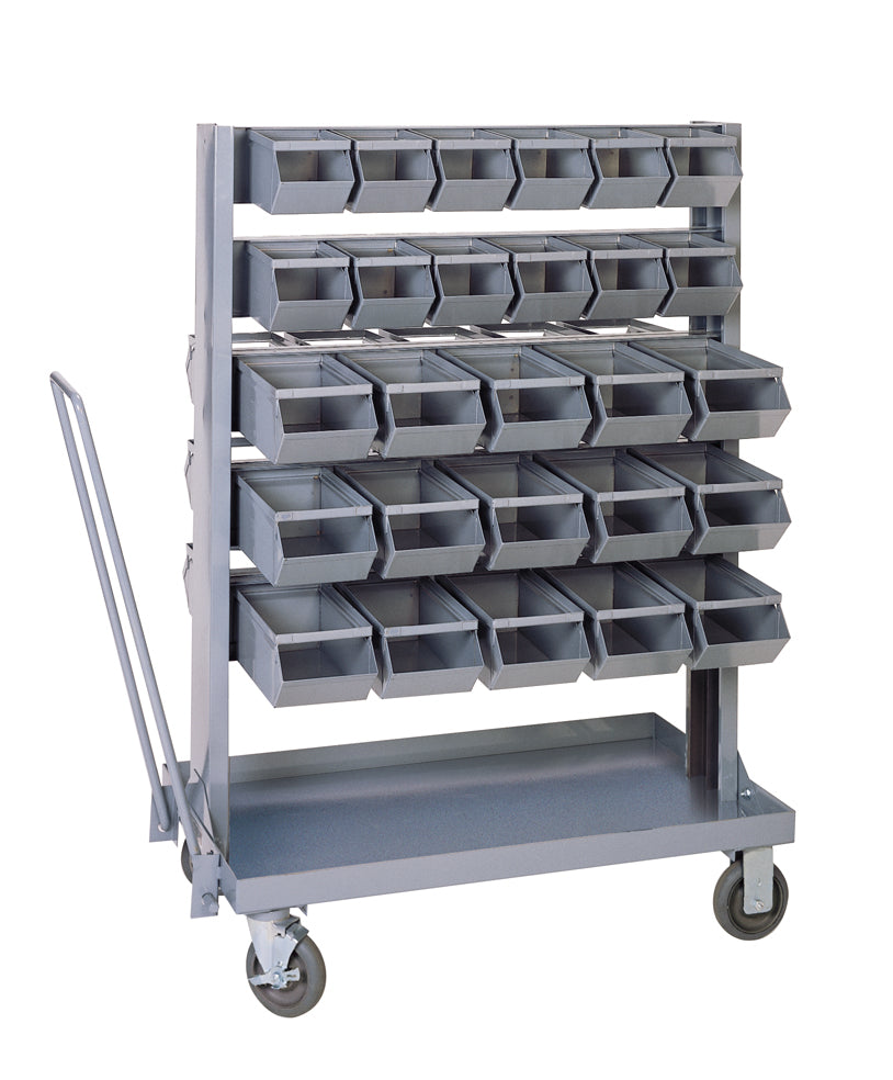 Engineered with a sturdy base and a compact footprint that’s easy to maneuver through aisles, the MBU delivers reliable, heavy-duty transport. Its quick-unclip rail system lets you remove bins in seconds for restocking or point-of-use access, keeping teams productive and inventory visible.