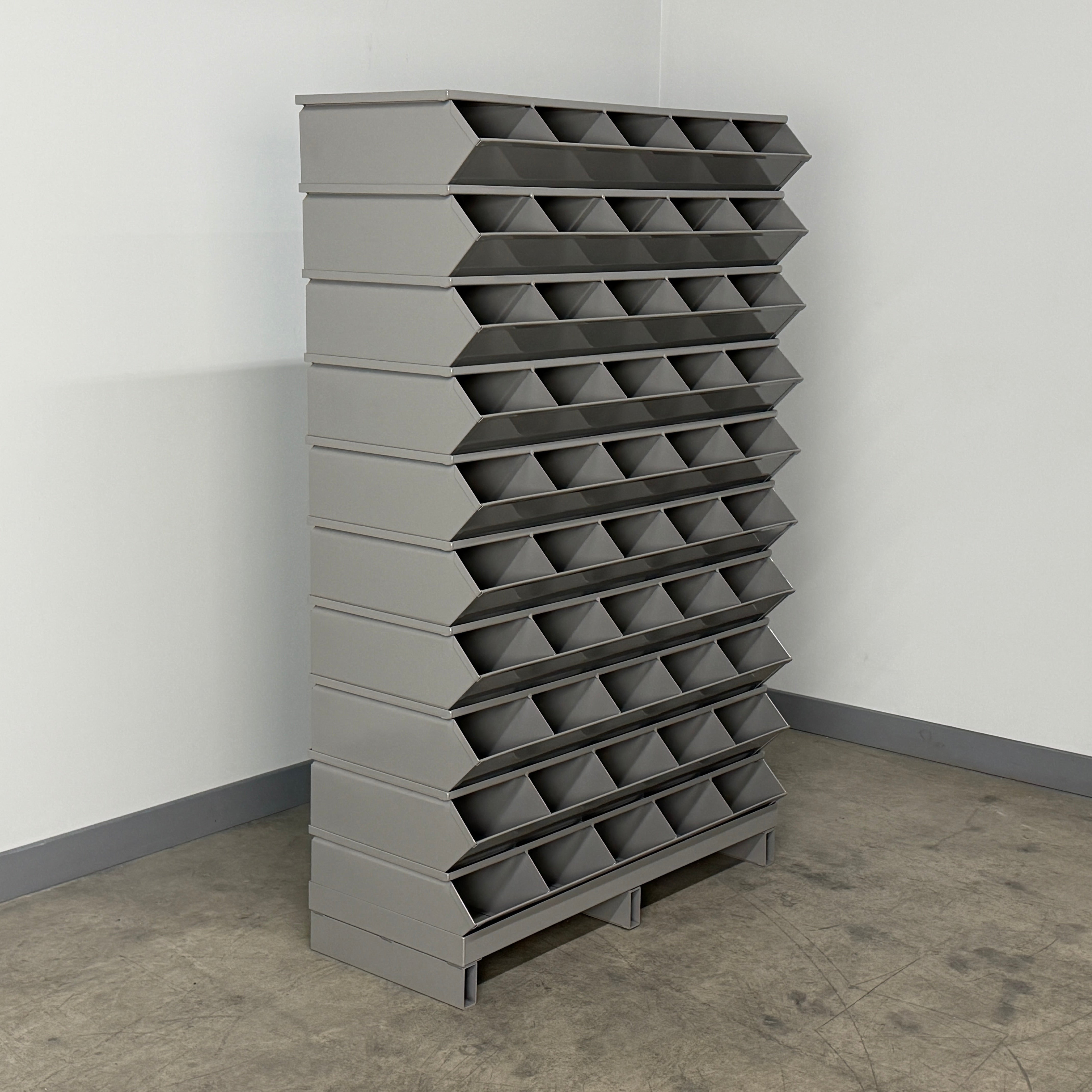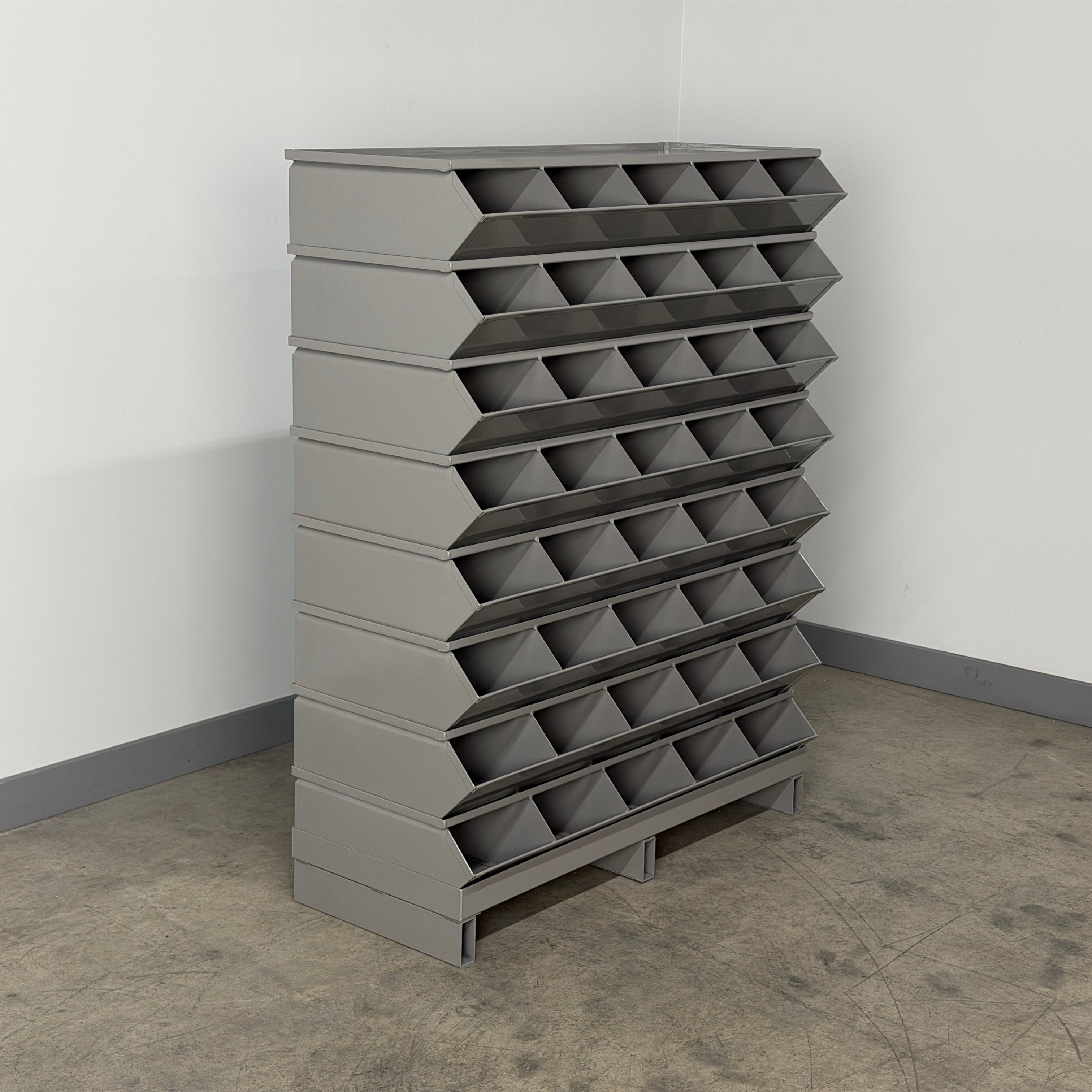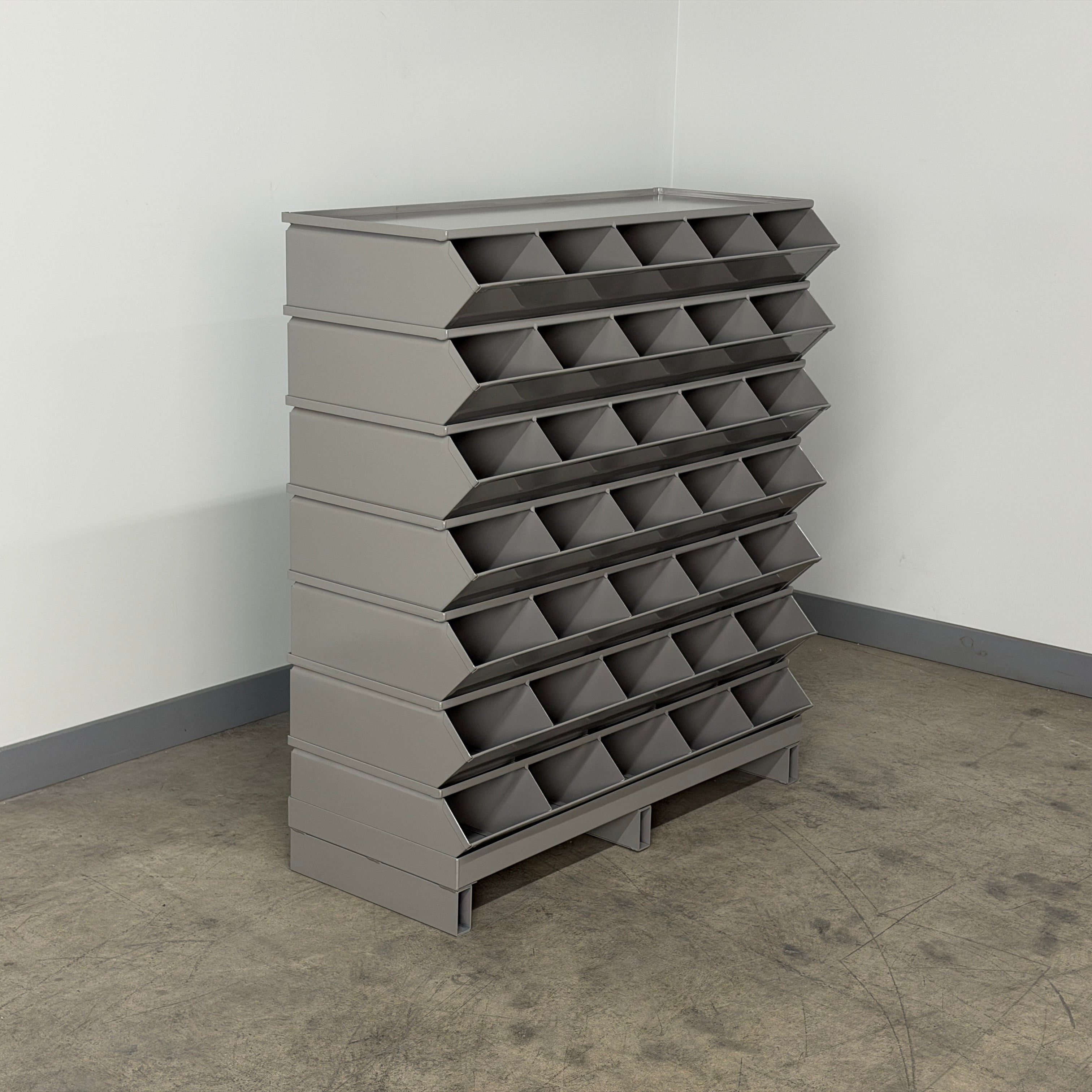 Built as a modular metal stacking bins solution, these stackable metal storage bins offer unmatched versatility for your facility. Each unit is sold by compartment quantity and engineered to stack securely on top of one another, allowing you to customize your bin storage cabinet configuration at any time without tools or complicated assembly. Whether you're organizing small components, hardware, or inventory, this steel bin system adapts to your changing storage needs.