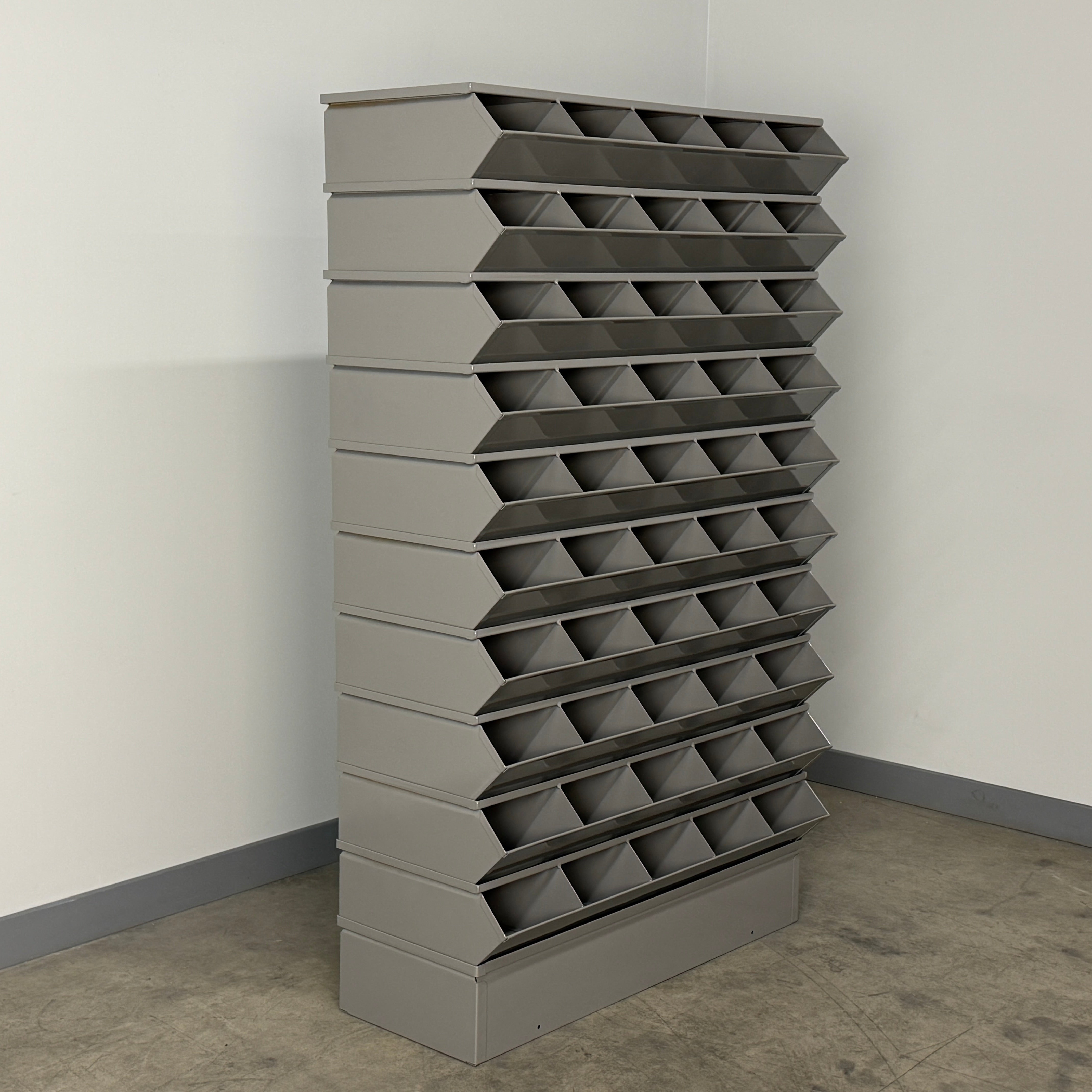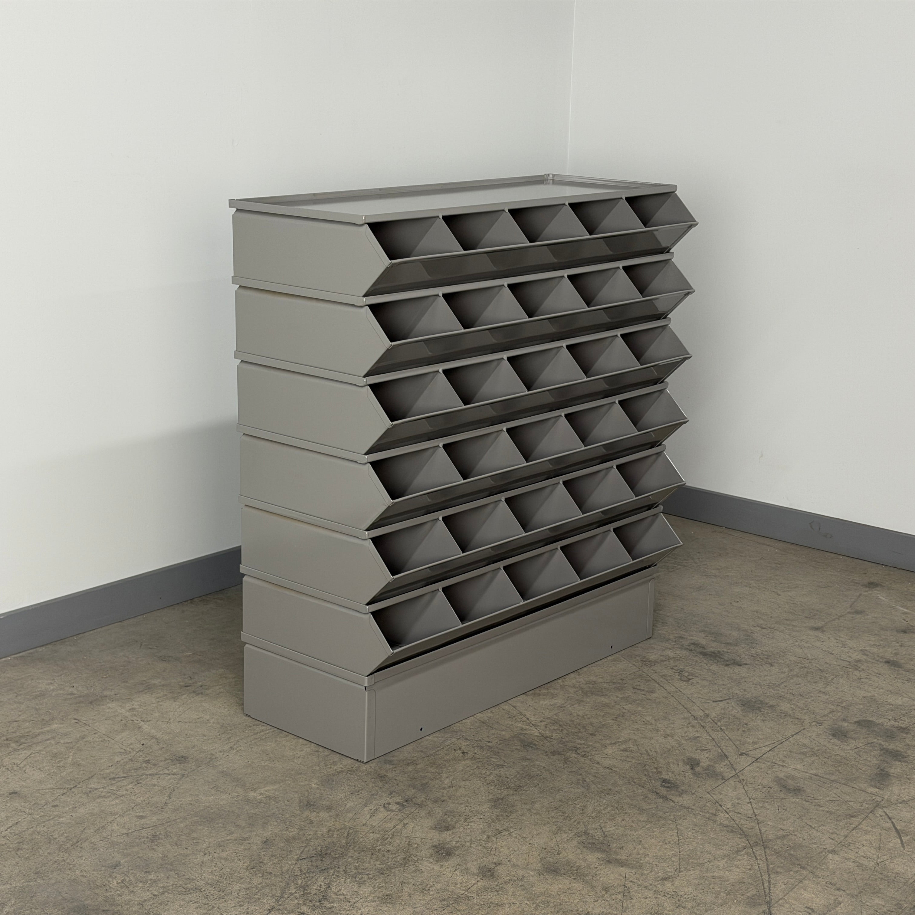 These metal hopper bins are perfect for organizing fasteners, electronic components, hardware, and other small items that require quick access and visibility. The sectional design means you're never locked into one configuration - simply stack, unstack, and rearrange as your storage requirements evolve.