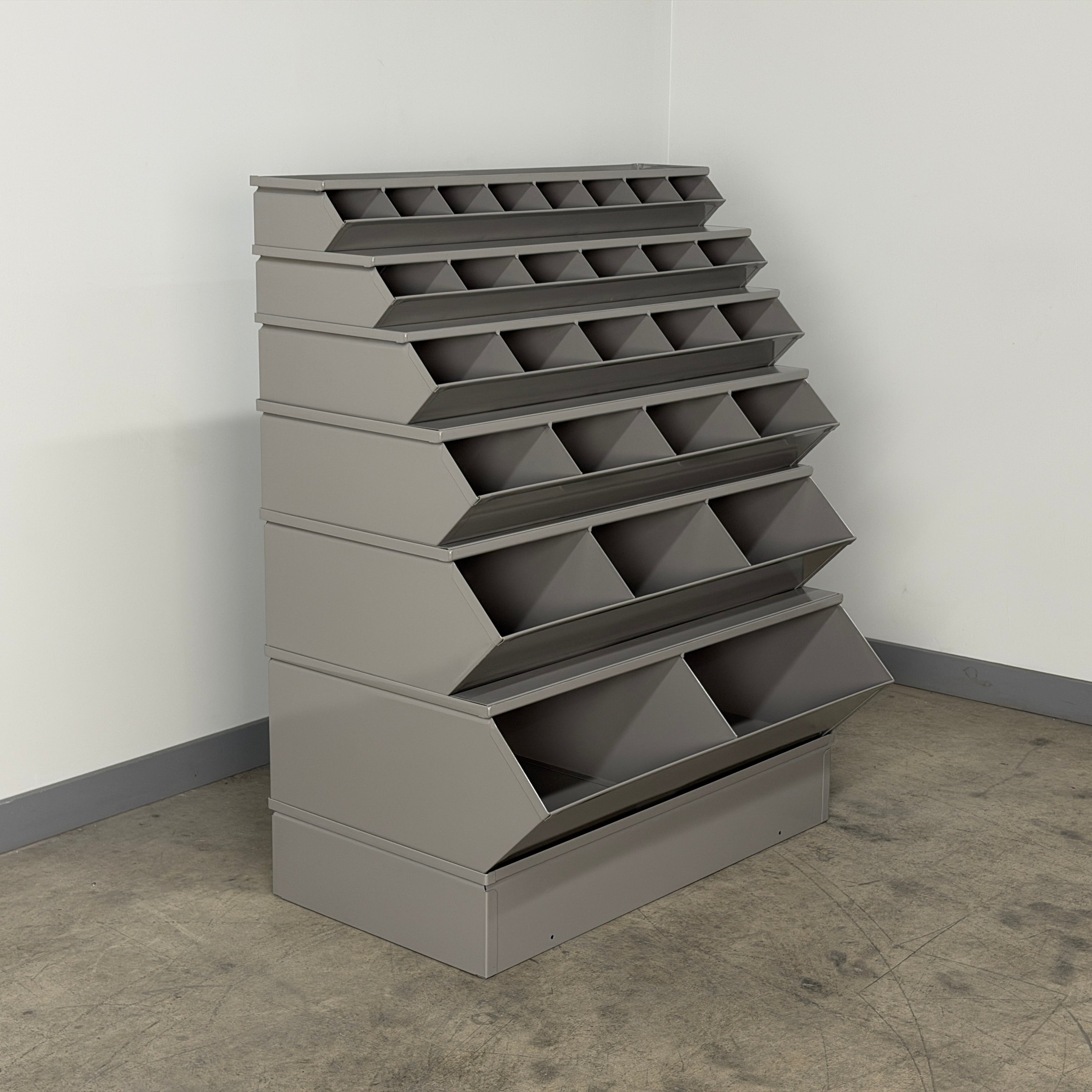 Each steel bin compartment tier functions as an individual unit, allowing you to stack, reconfigure, or expand your storage setup whenever your needs change. This modular design makes it easy to customize your bin storage cabinet configuration without purchasing entirely new systems.