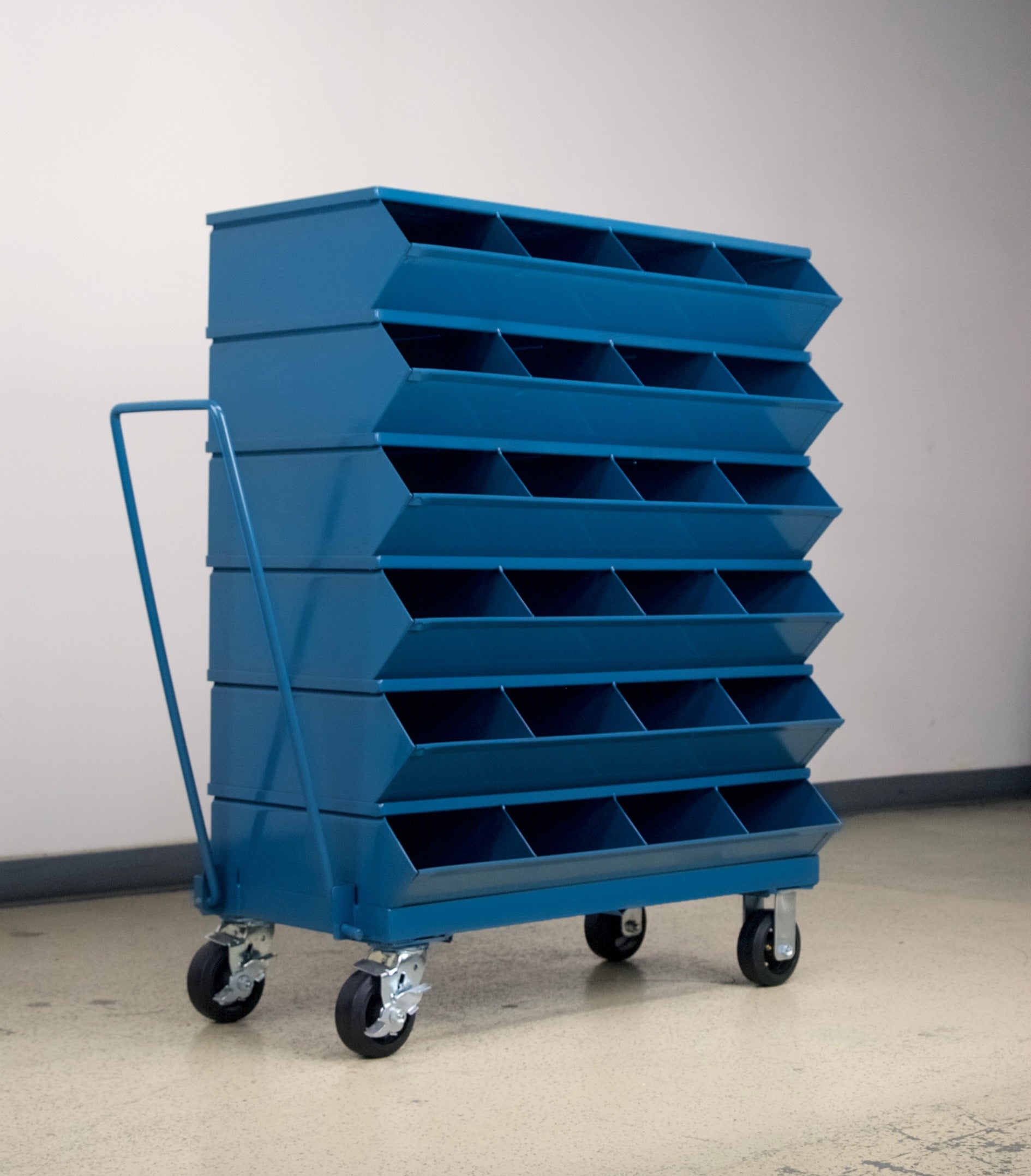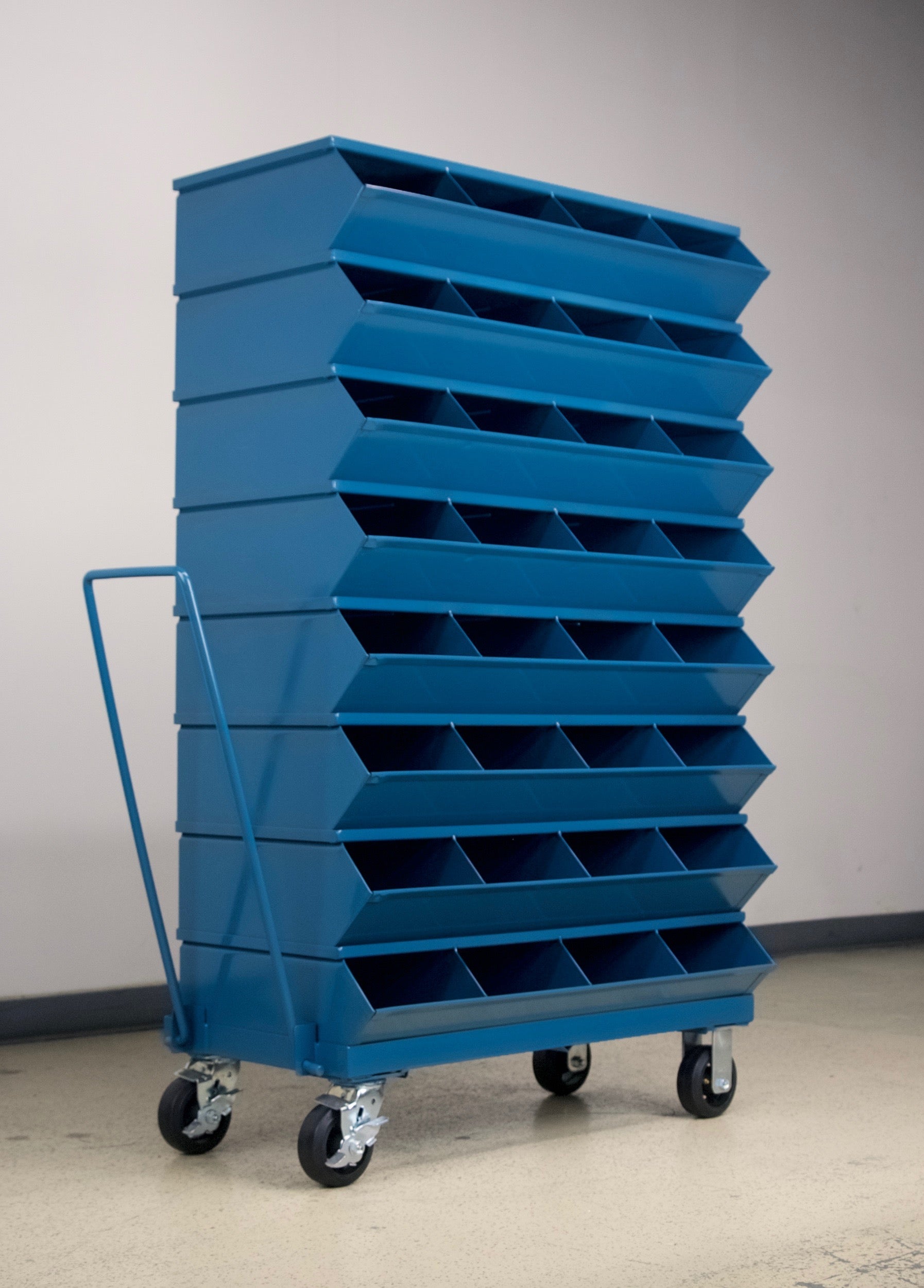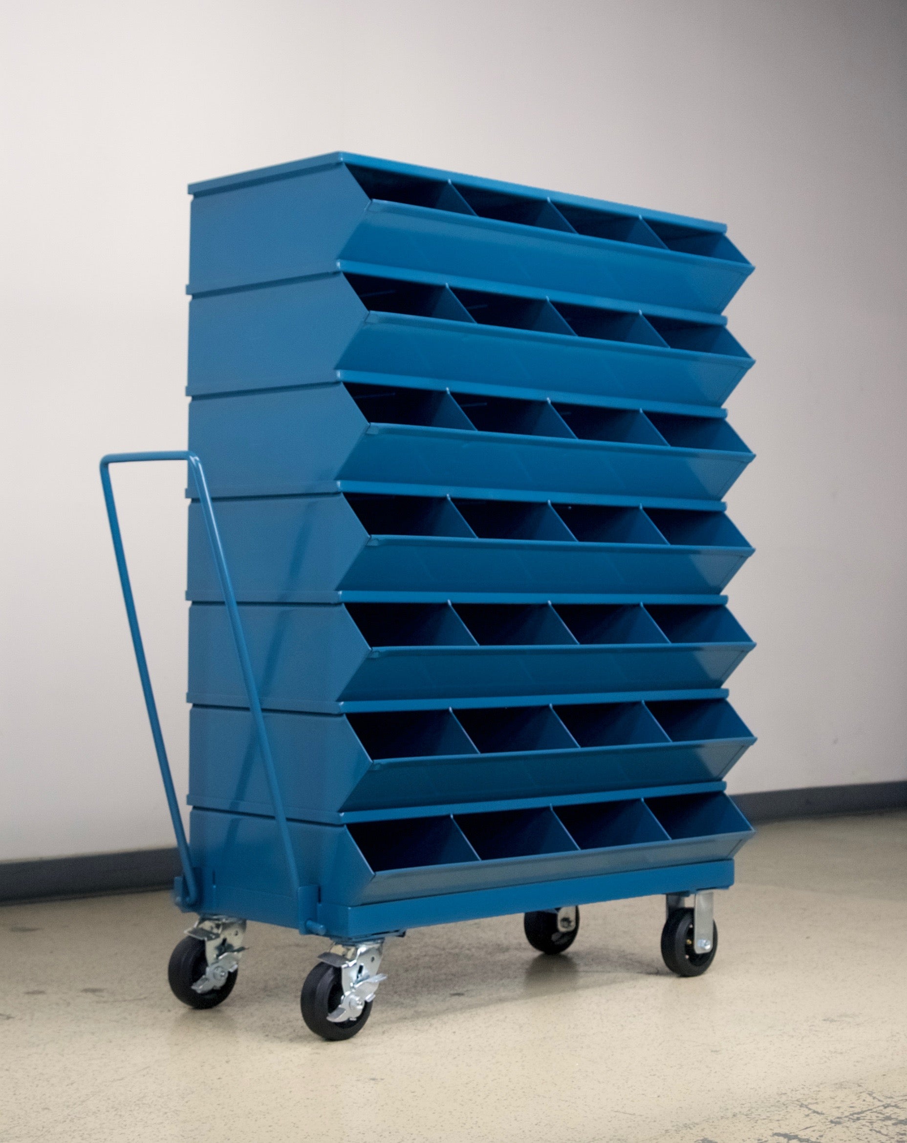 Mobile Sectional Bin Unit with Stackable Metal Storage Bins