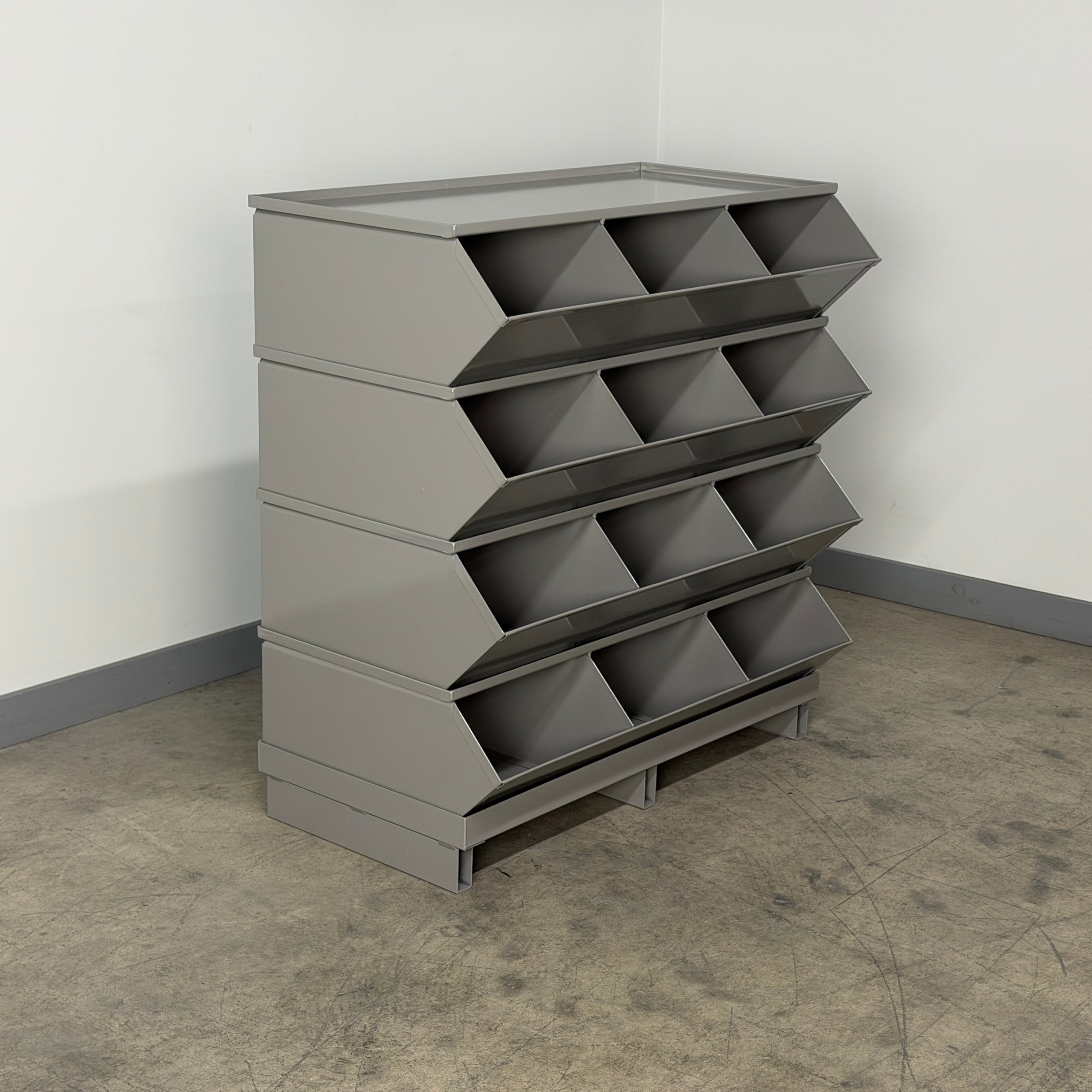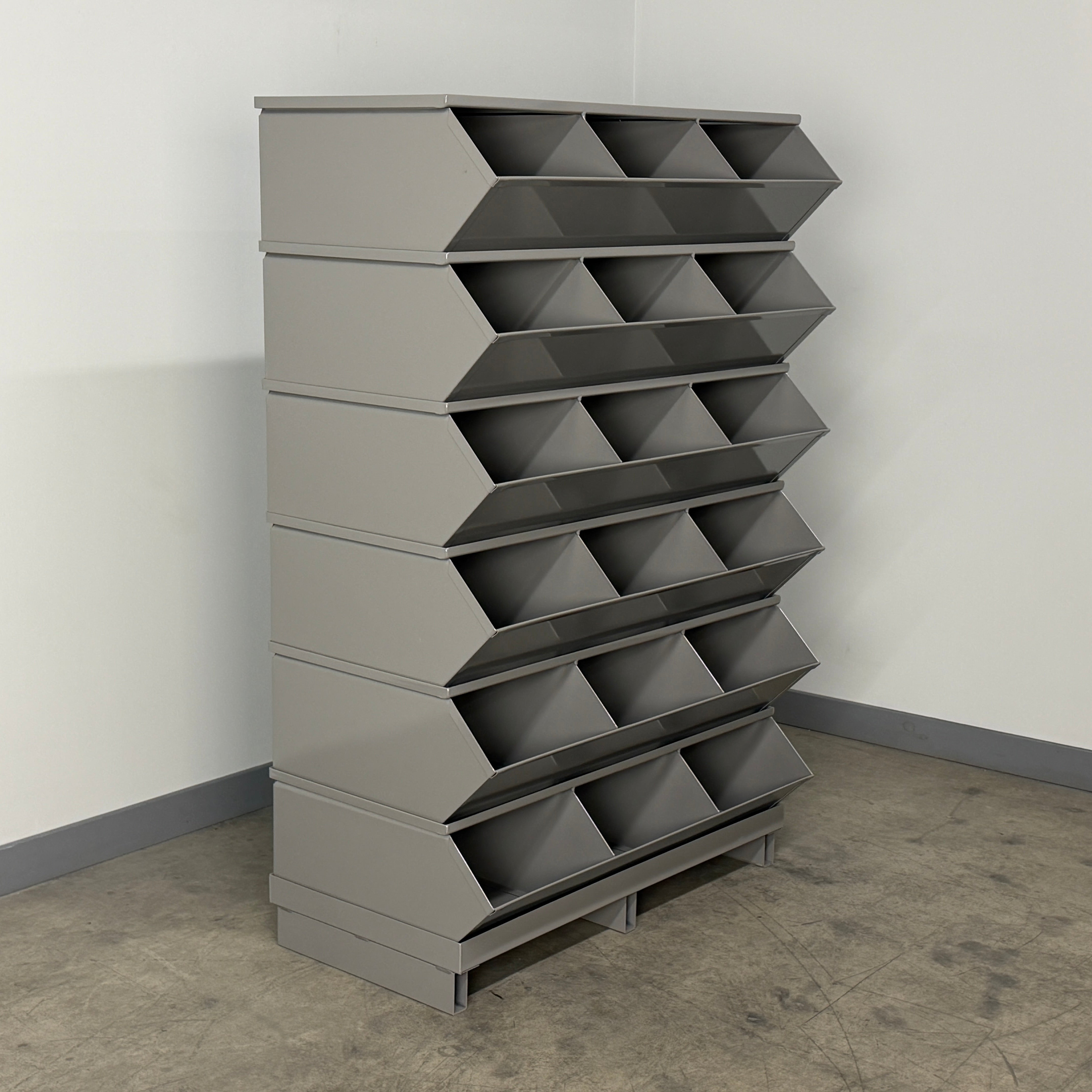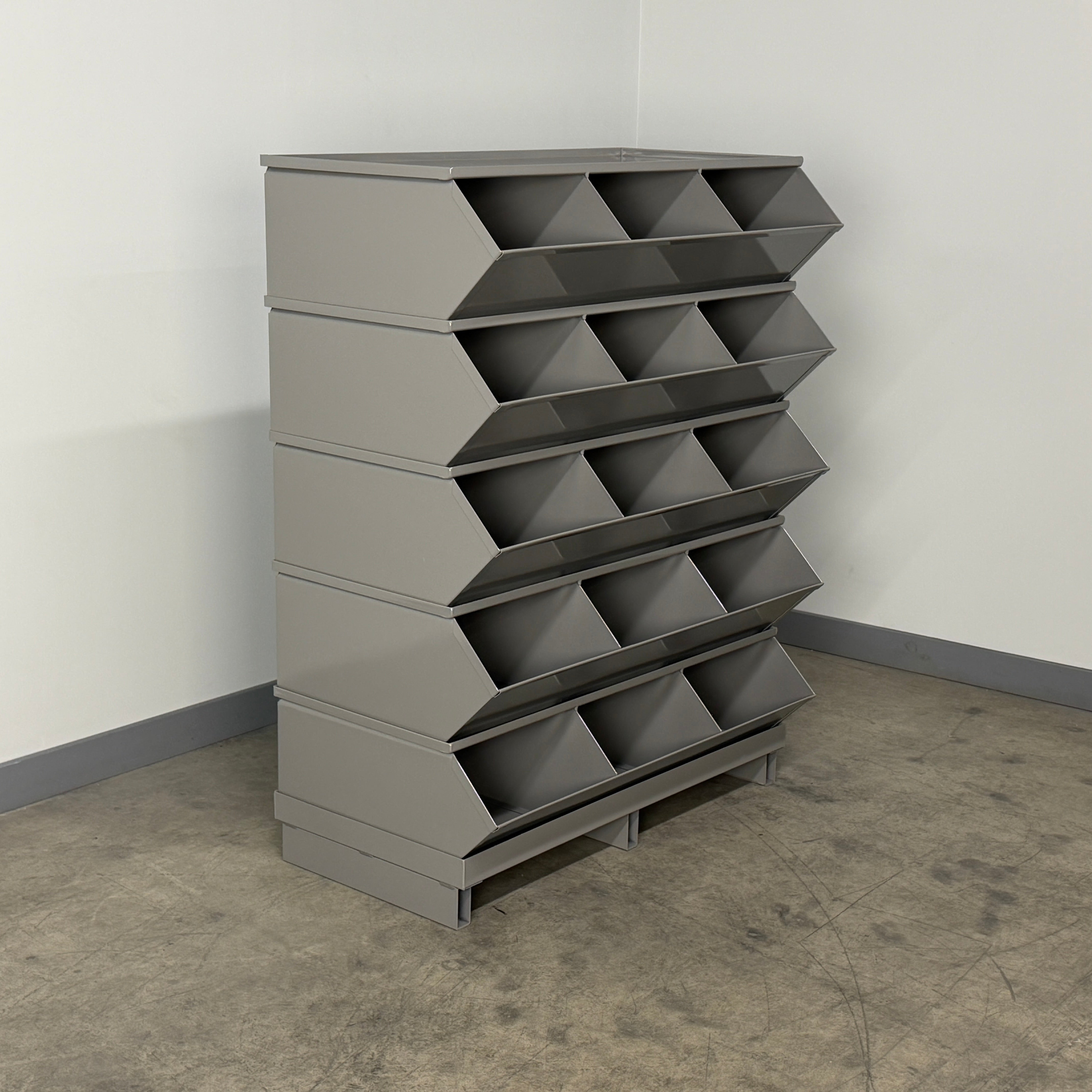 Whether you need a single stainless steel bin-compatible setup or a full bank of parts bins, this Stackbins solution delivers professional-grade organization with the flexibility to grow and change with your operation.