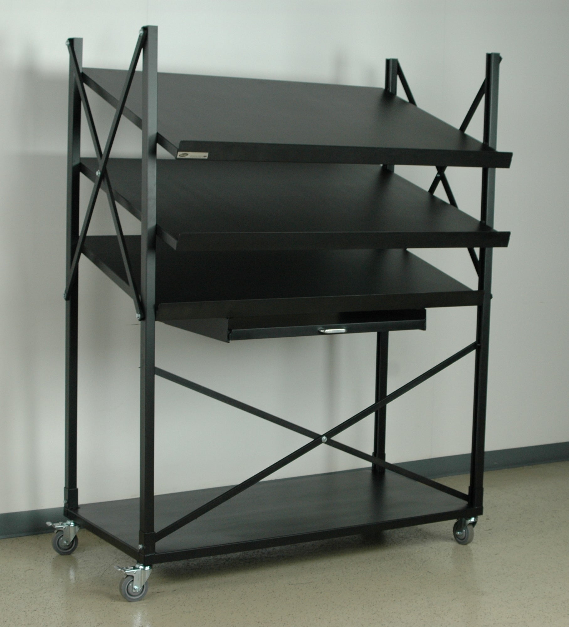 - Convenient 32" × 20" pull-out tray on bottom shelf