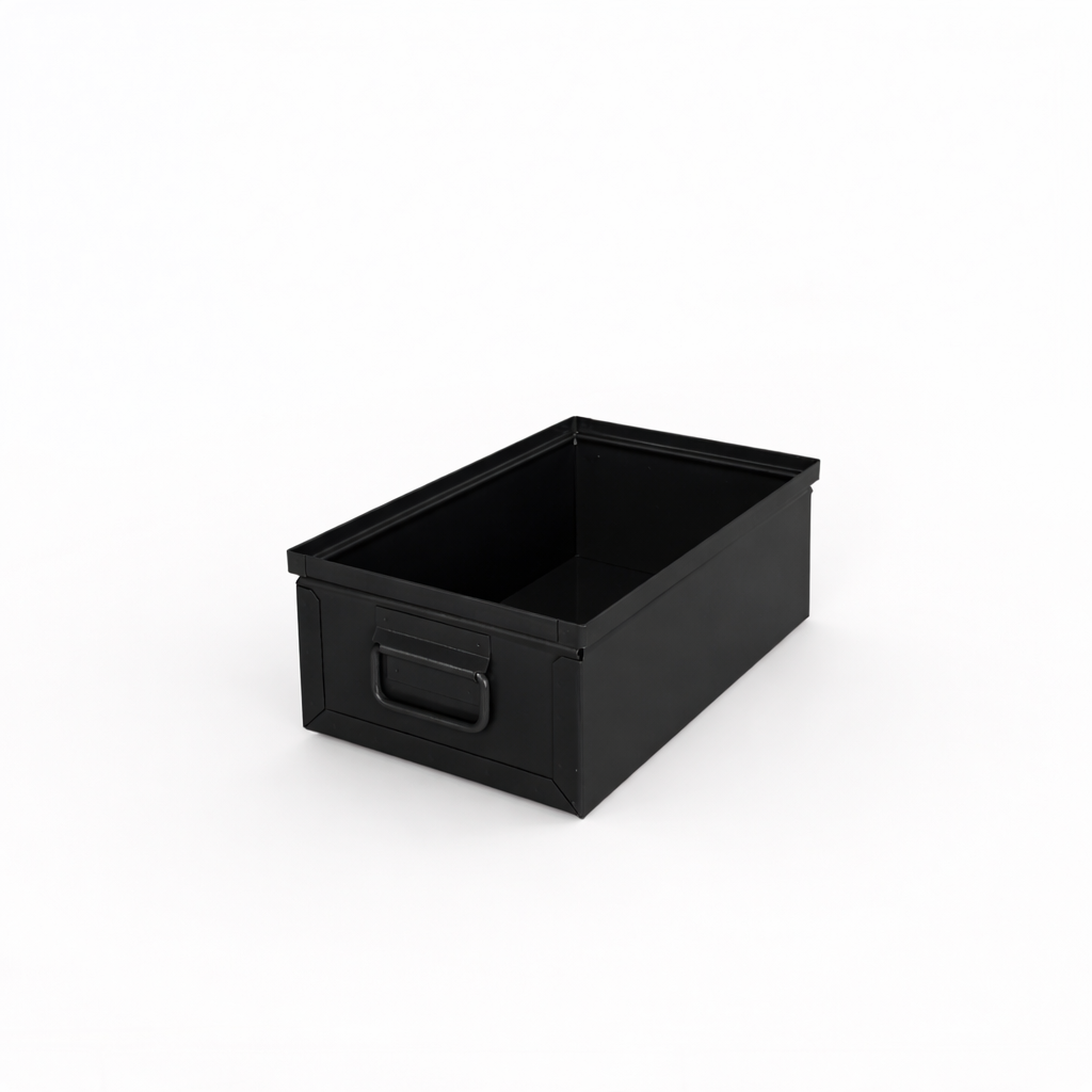 Designed for maximum versatility, these stackable metal storage bins include integrated drop handles on both ends, making transportation of materials quick and comfortable. The ergonomic handle design ensures easy lifting and carrying, whether you're moving the bins individually or as part of a larger storage system.