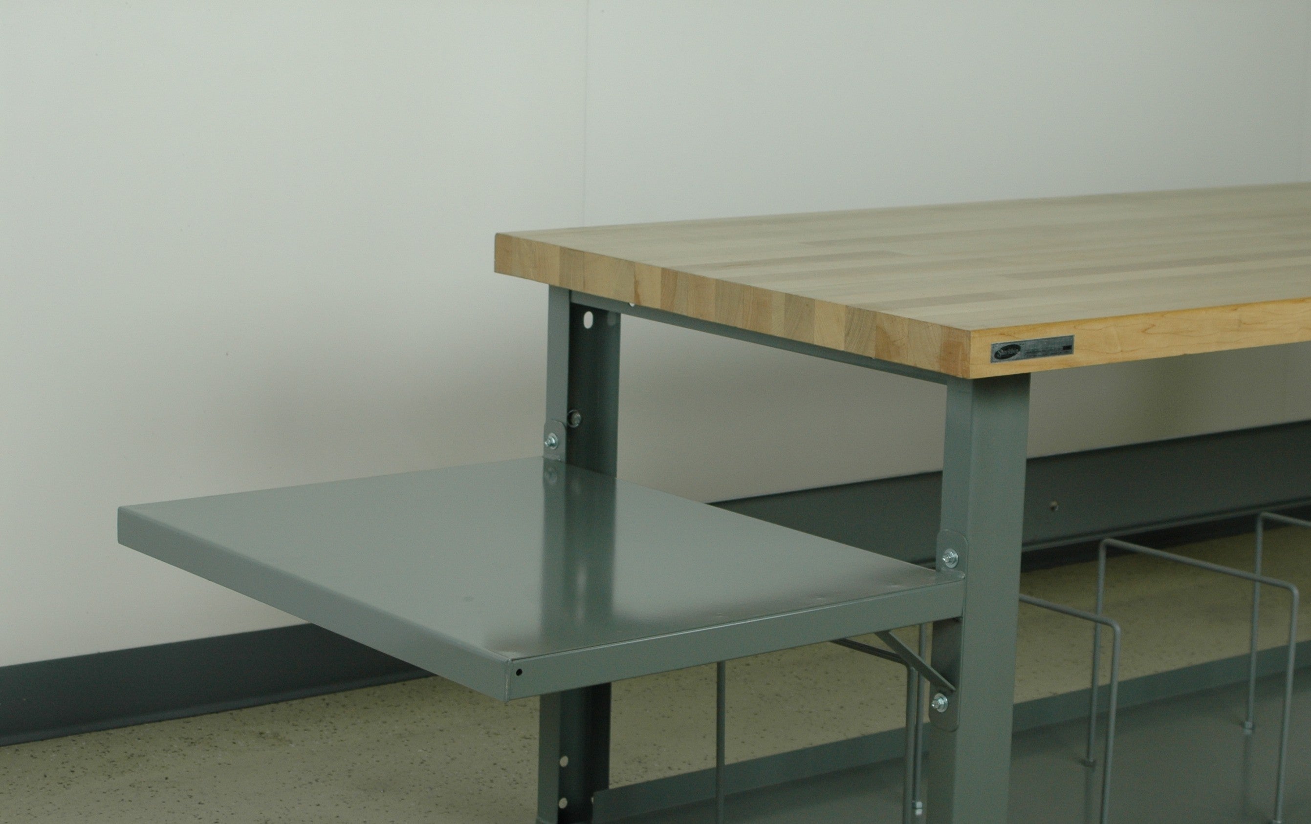 Expand your workstation with a fully-welded side table designed to bolt directly to any Stackbin workbench leg. This accessory mounts on either the left or right side of your workbench, adding a dedicated platform for scales, printers, tape dispensers, and other peripherals without occupying valuable worksurface space.