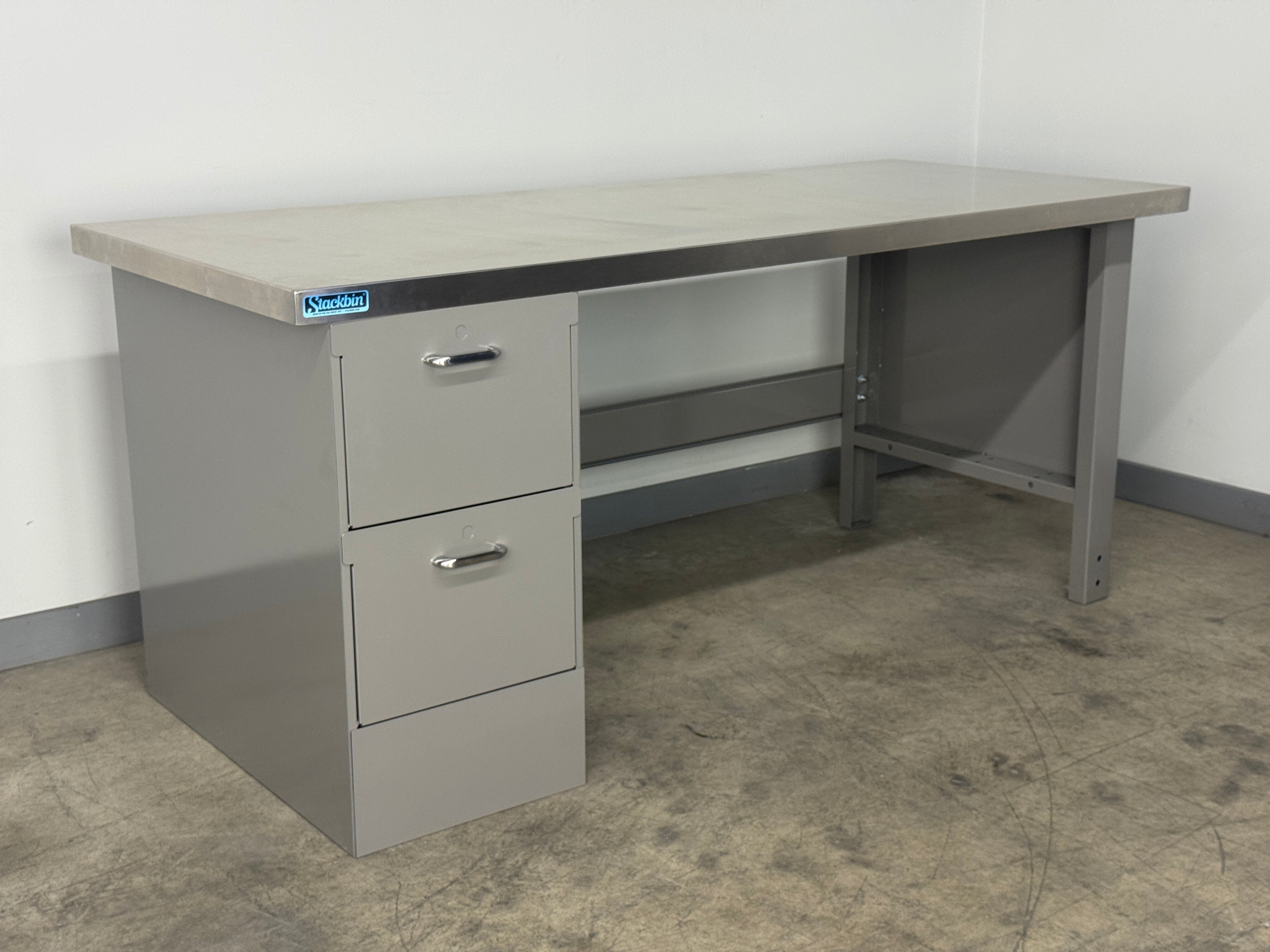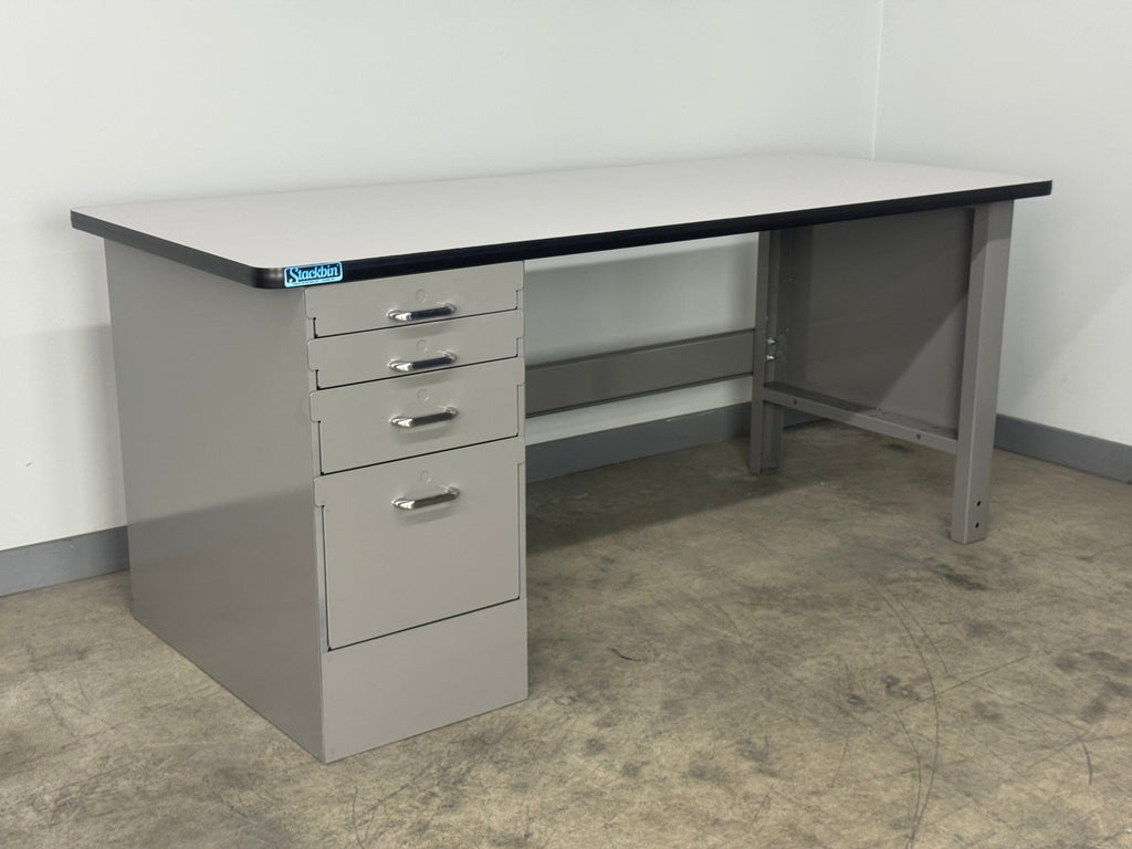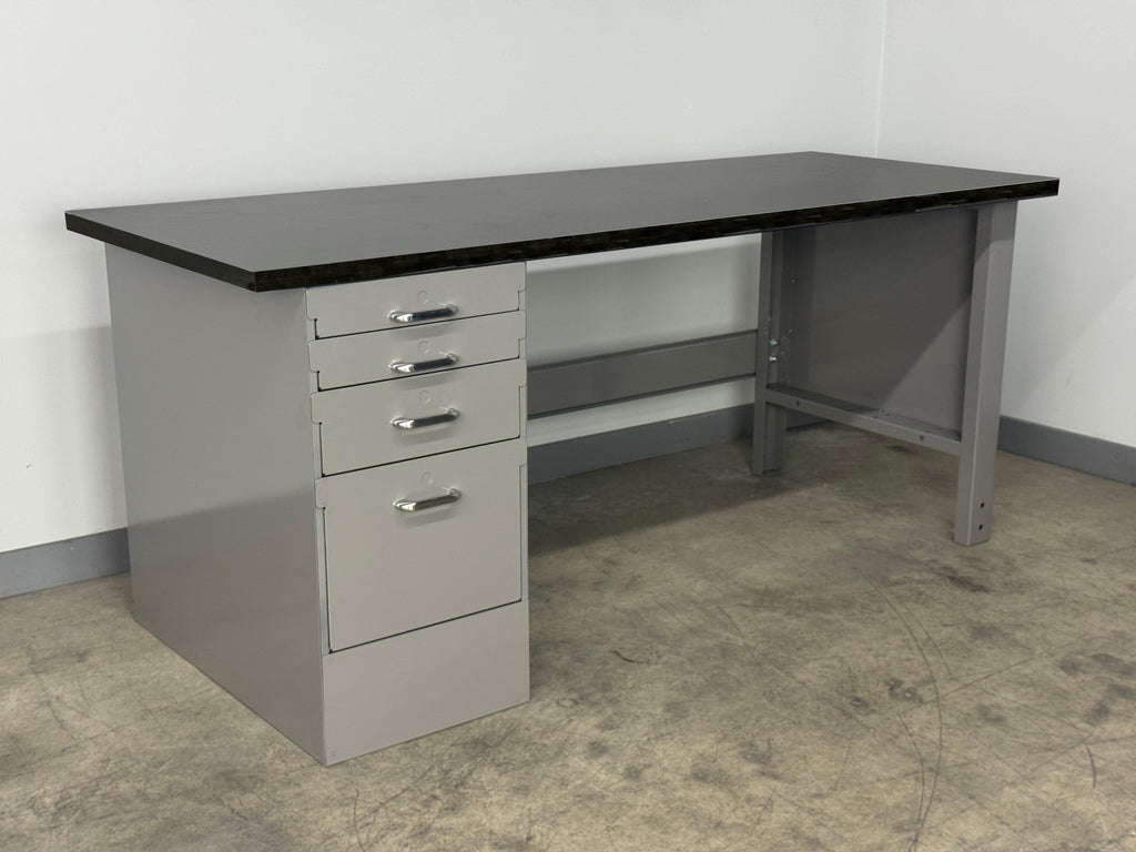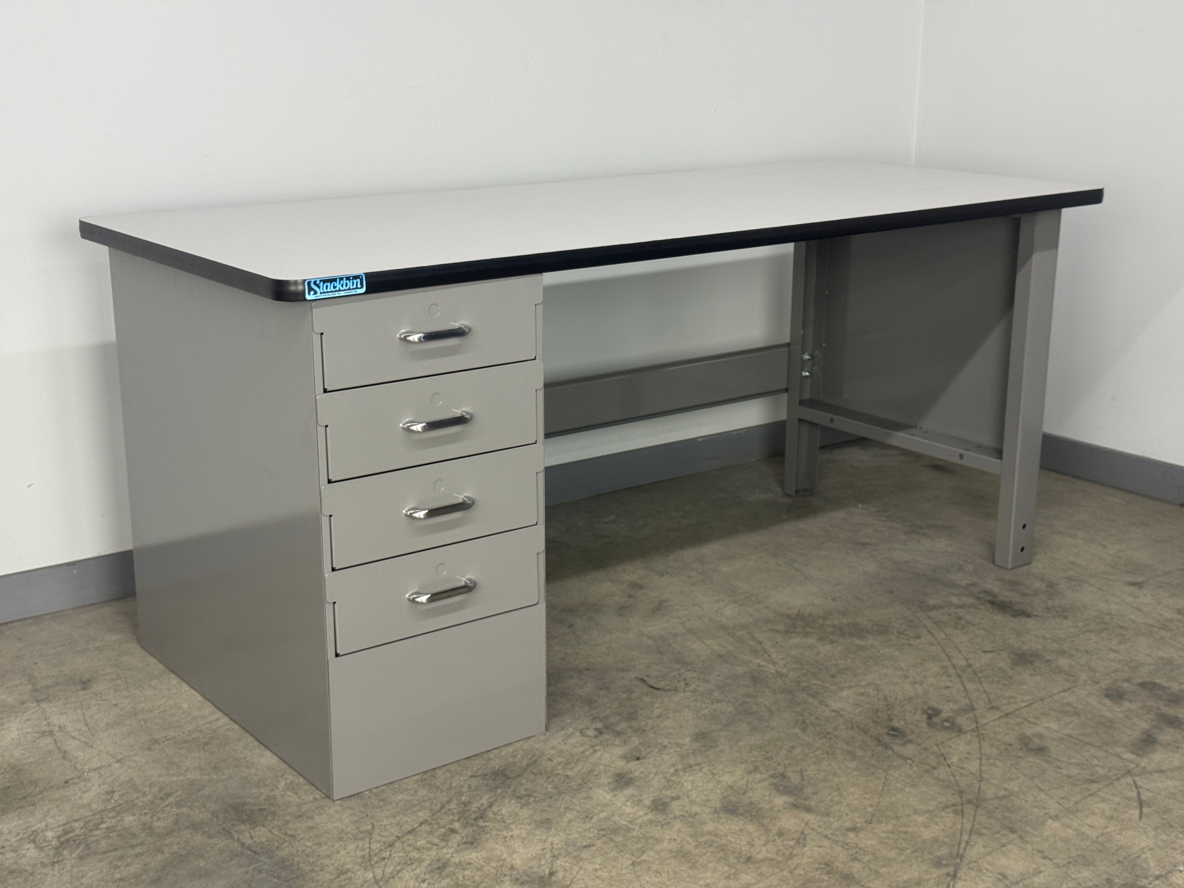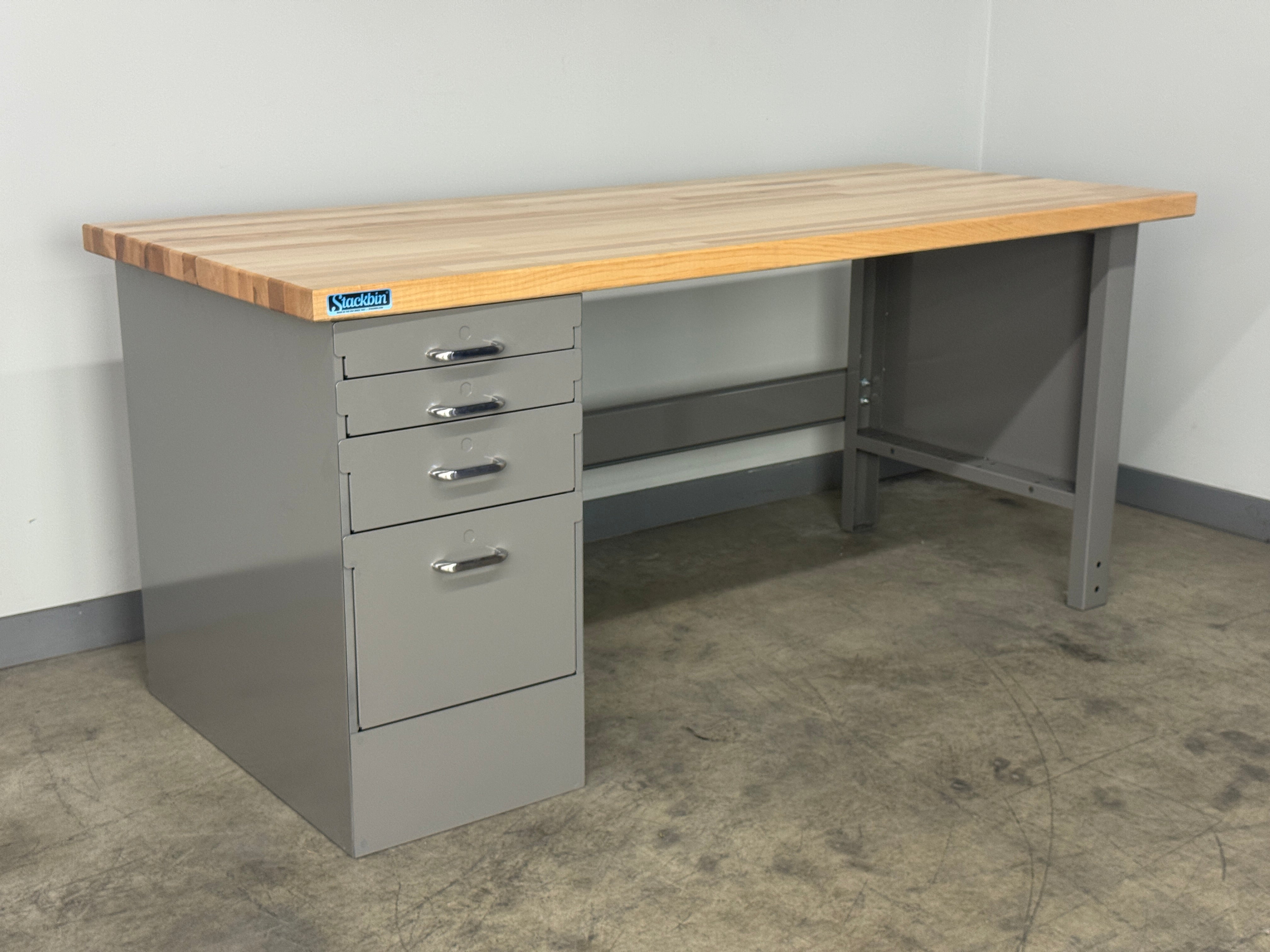 This single pedestal workbench features various variations of drawers, equipped with 20" extension roller bearing drawer slides. The drawer pedestals are shipped fully assembled and maintain a standard height of 30 1/4" (without worksurface). Explore the extensive range of options and enhance the functionality of your workspace with our versatile and convenient workbench solutions.