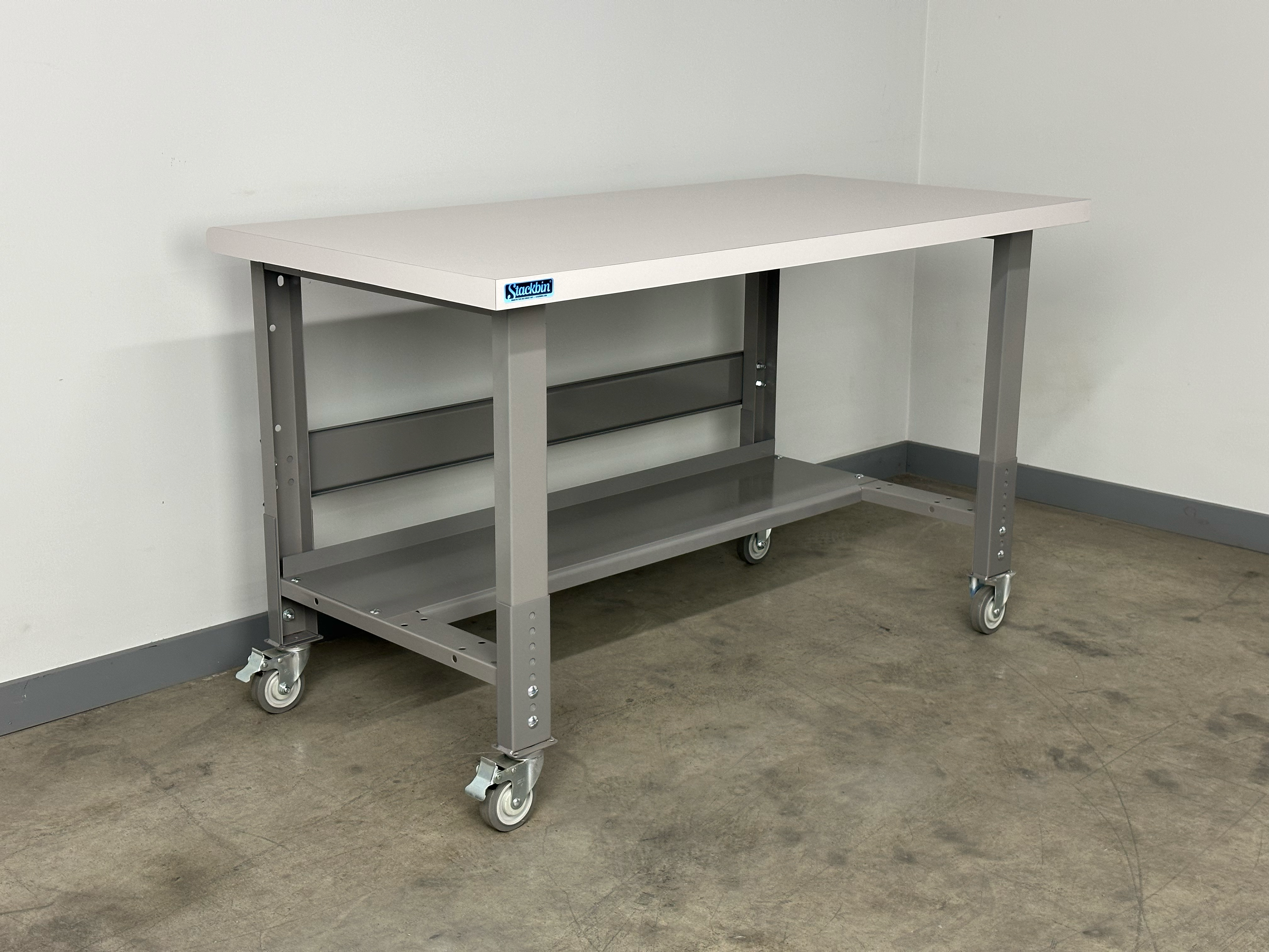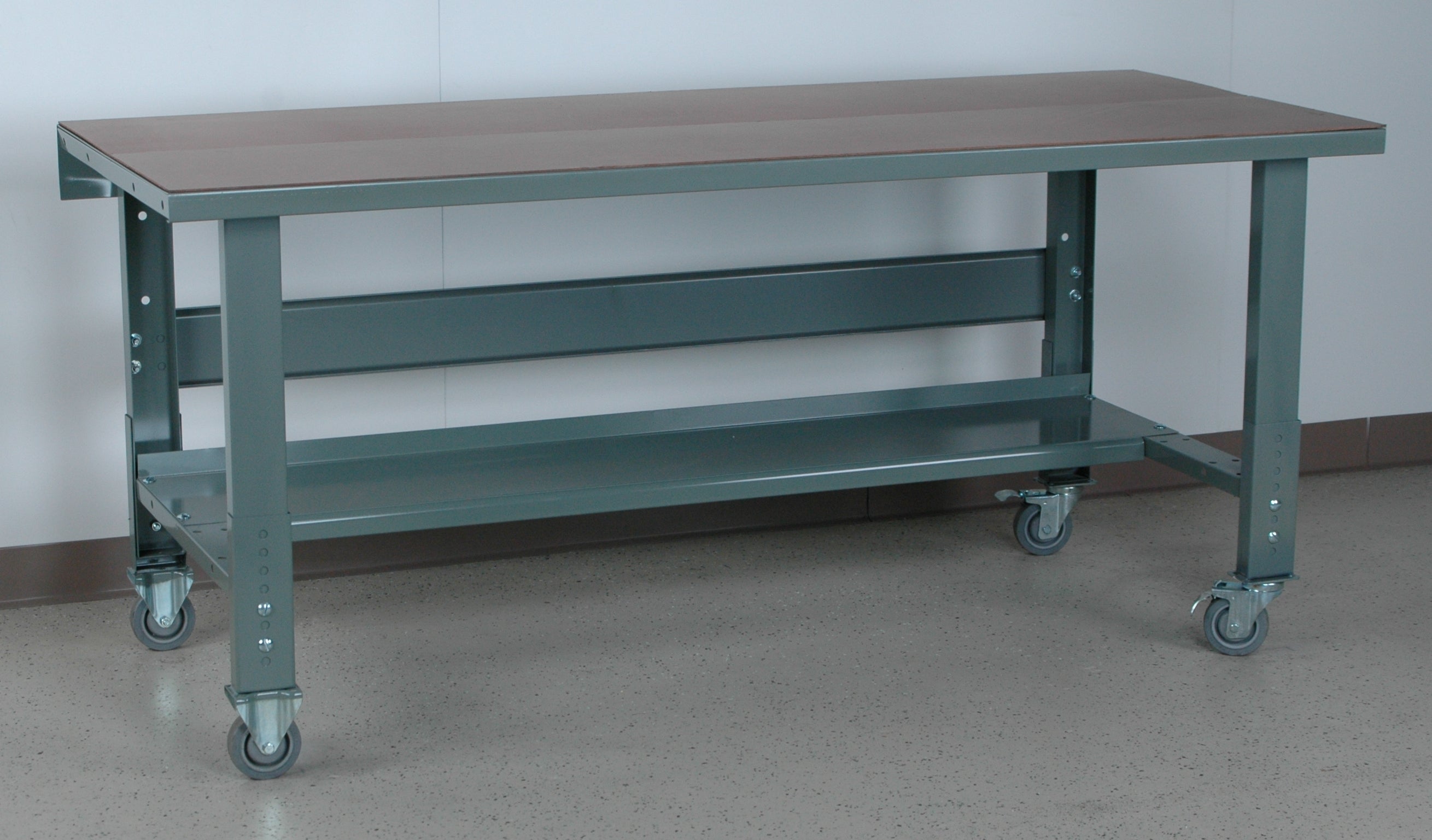 Upgrade your workspace with a heavy duty workbench built for mobility, stability, and everyday performance. The 3512 mobile workbench features robust 14-gauge, fully arc-welded legs that deliver long-lasting strength for demanding tasks in the workshop, garage, or industrial floor. With rugged rubber-over-steel casters rated for substantial loads and welded to adjustable leg caps, this portable workbench moves smoothly and locks in place when you need it to stay put.