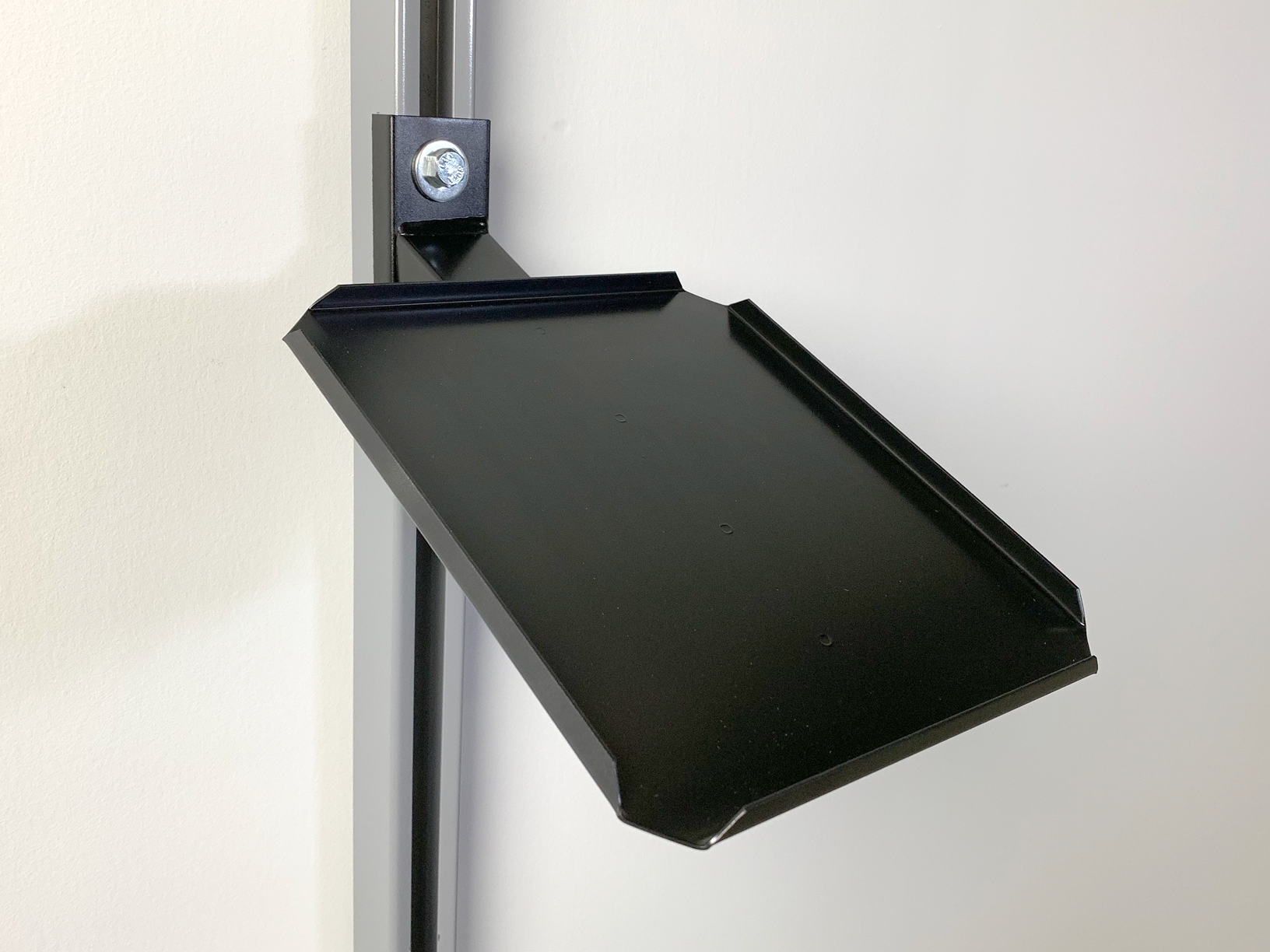 This 8" x 10" tray is perfect for keeping small label printers off the work surface and out of the way. It attaches to a Stackbin overhead upright and is height adjustable, it will also work on UniStrut and 80/20 extruded aluminum applications.