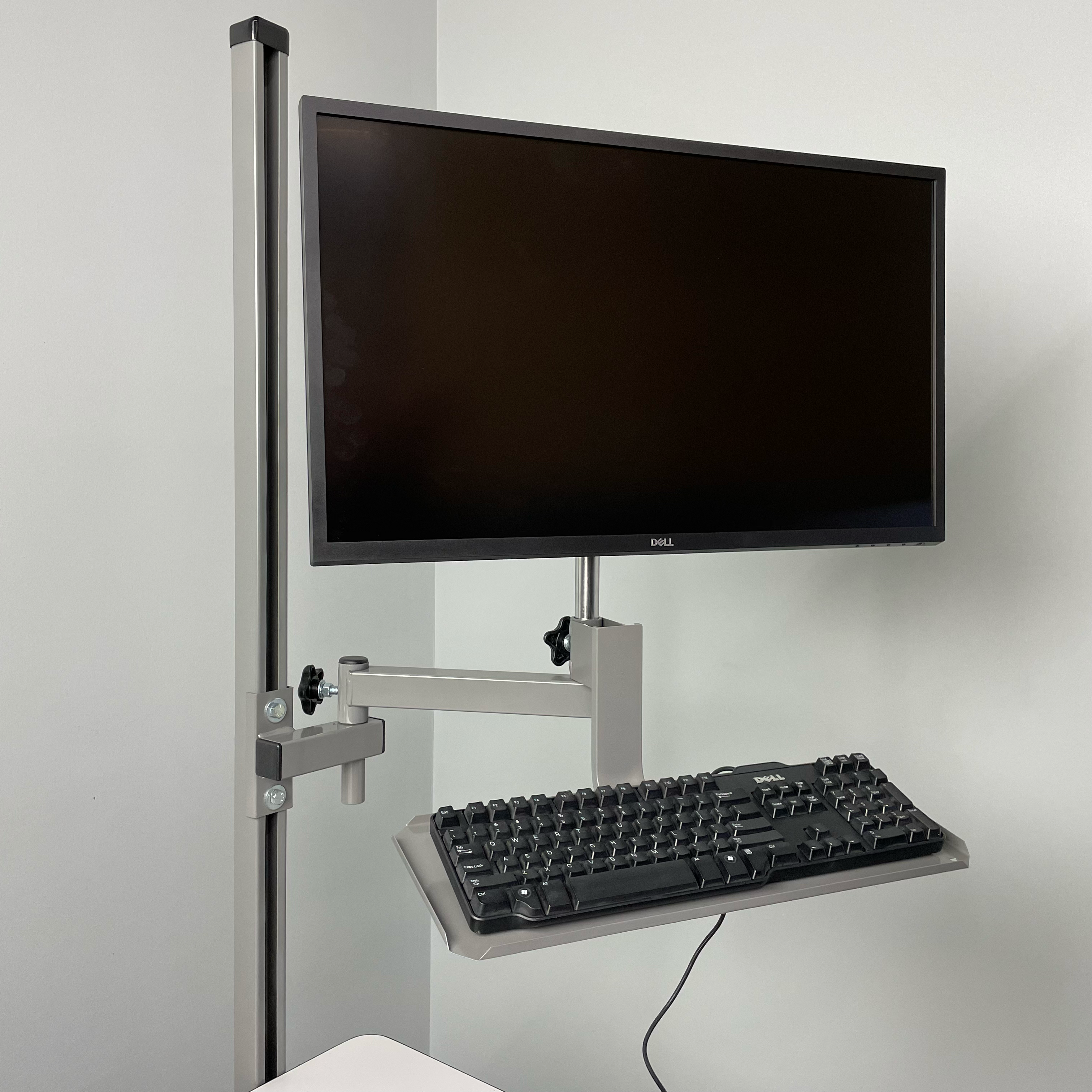 Articulating Flat Screen Monitor Arm with Keyboard Tray for Stackbin Workbenches