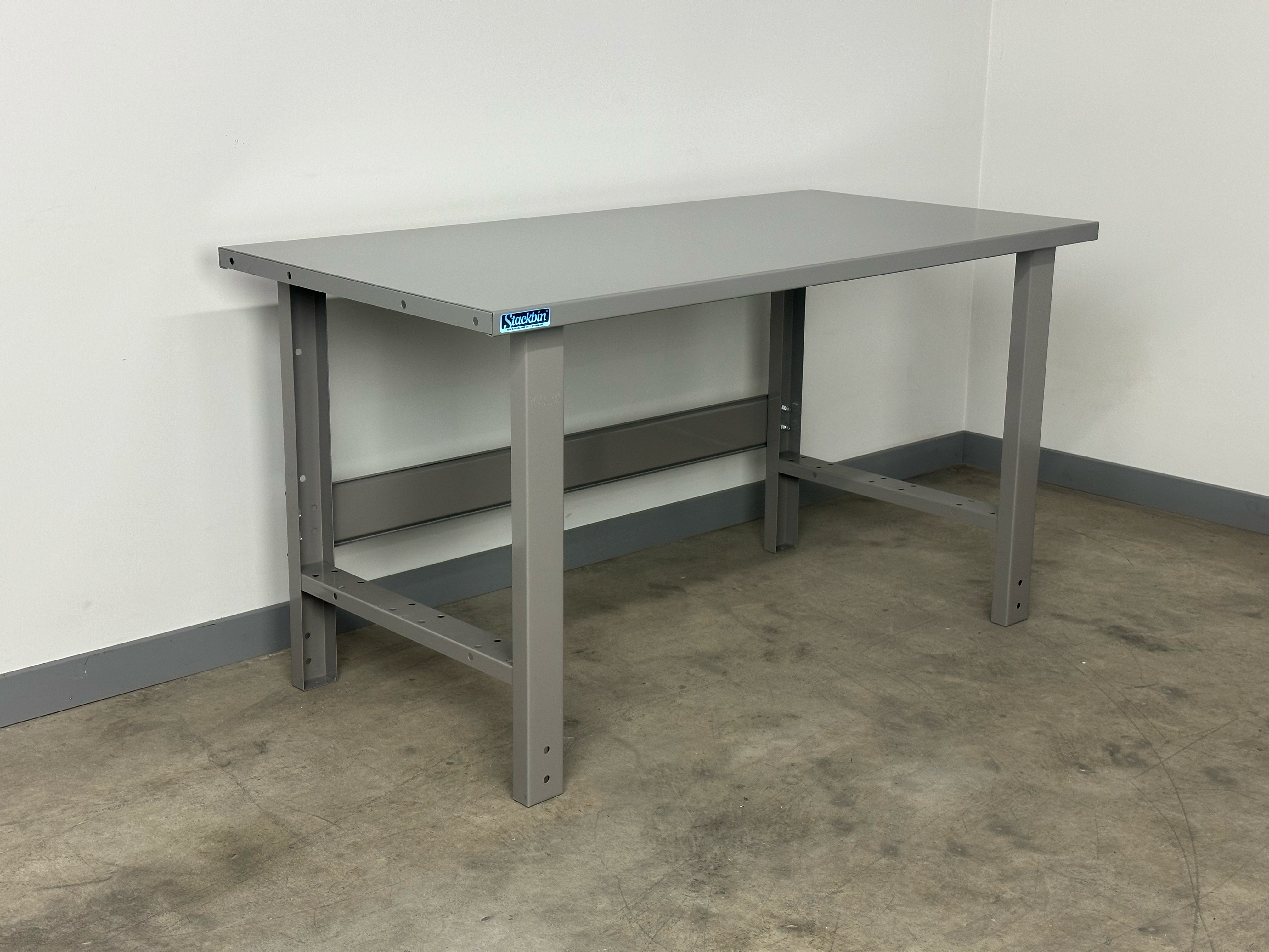 Upgrade your workspace with a rugged heavy duty workbench built to handle demanding tasks day after day. This metal workbench features the same durable steel top and stringer used across our entire line, plus three welded 14-gauge longitudinal support struts that tie directly into the legs for exceptional strength and stability. Proudly built in the USA since 1931, it’s a proven choice for garages, workshops, and industrial environments.