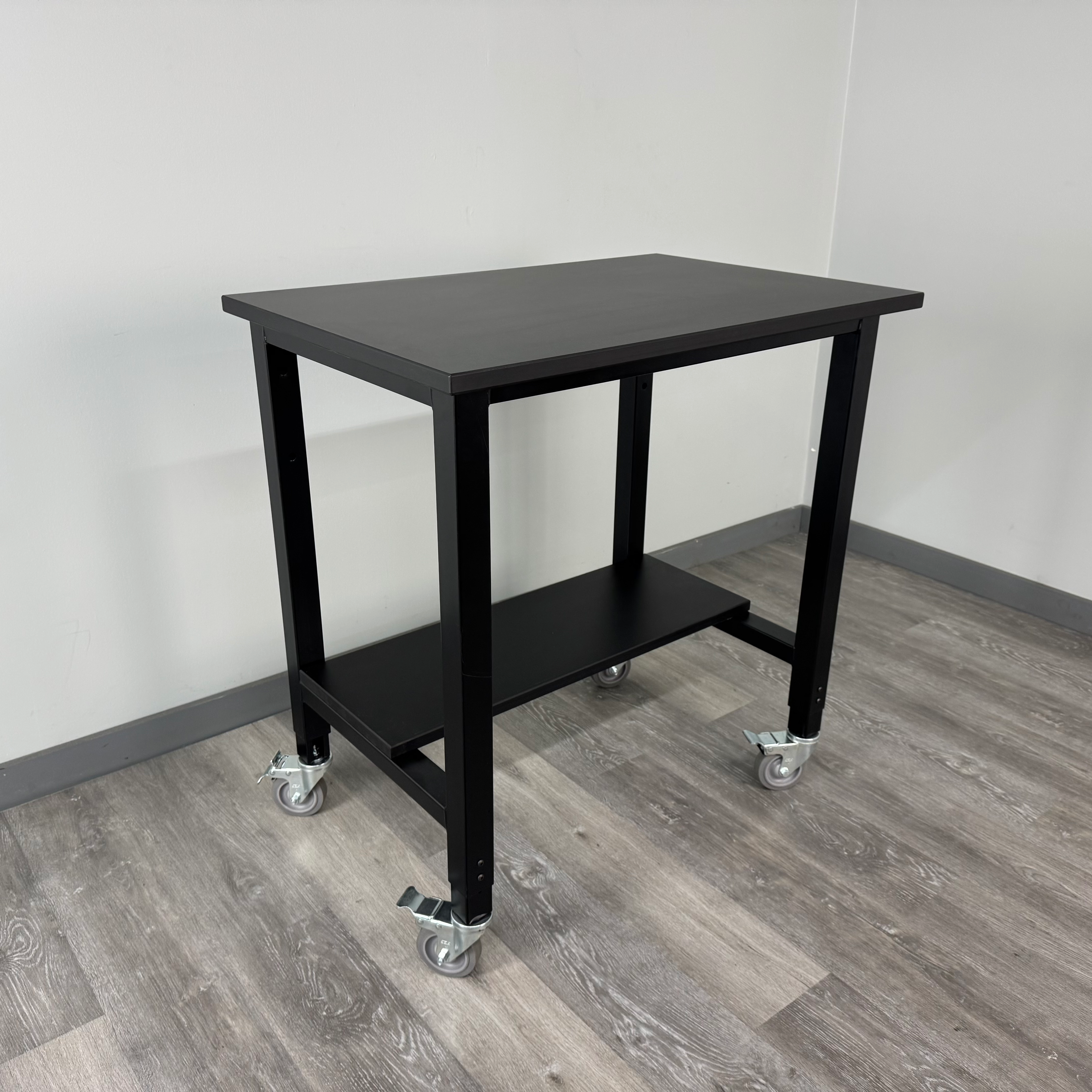 Optimize your cleanroom or lab with a durable, mobile ergonomic workstation built to stand up to demanding environments. This laboratory cart features a fully welded steel box-tube frame for long-lasting strength and stability, paired with adjustable leg caps and total-lock casters that keep your cart securely in place while offering flexible height adjustability. The lab-grade phenolic work surface resists chemicals, spills, and daily wear, and a matching phenolic bottom shelf adds convenient, easy-clean storage.