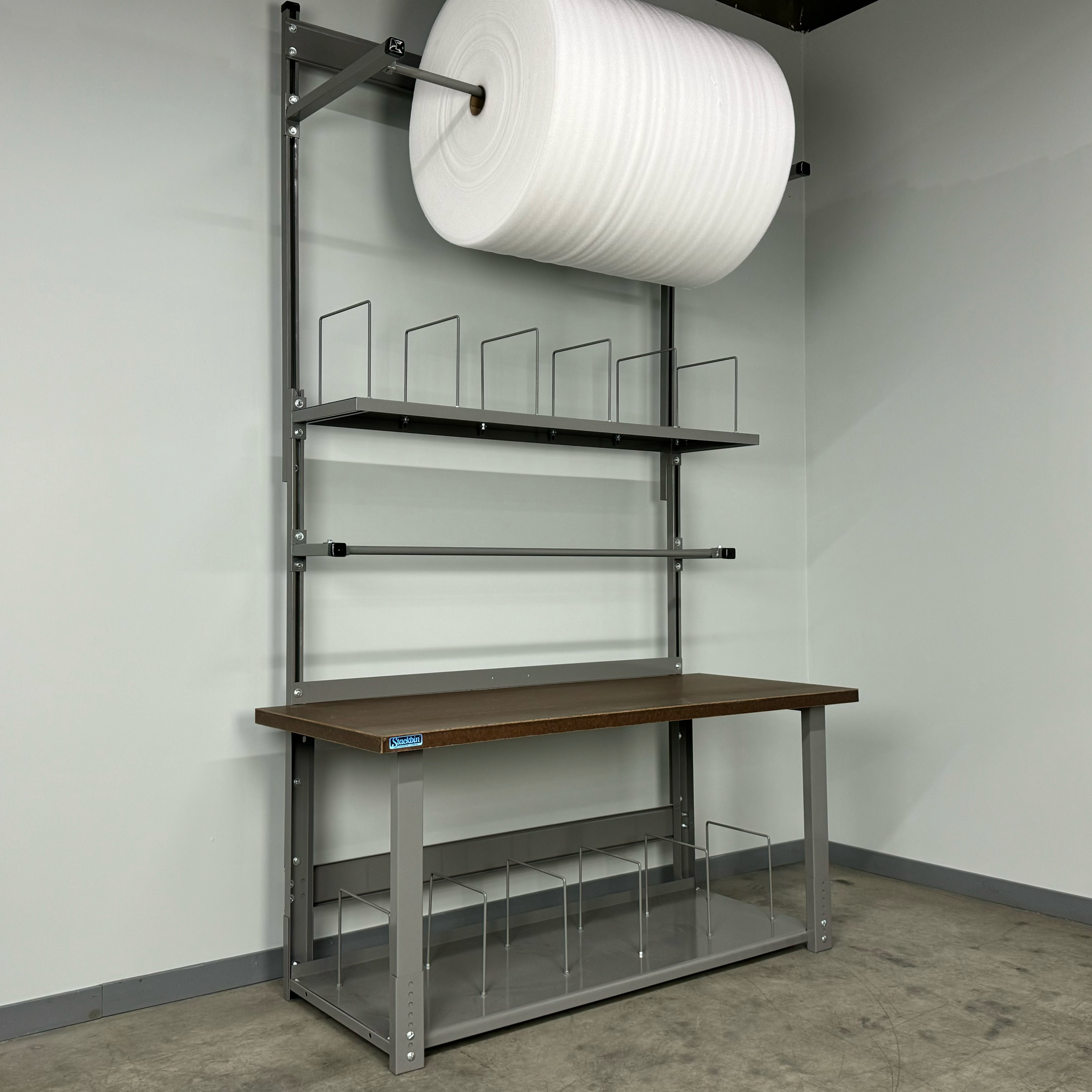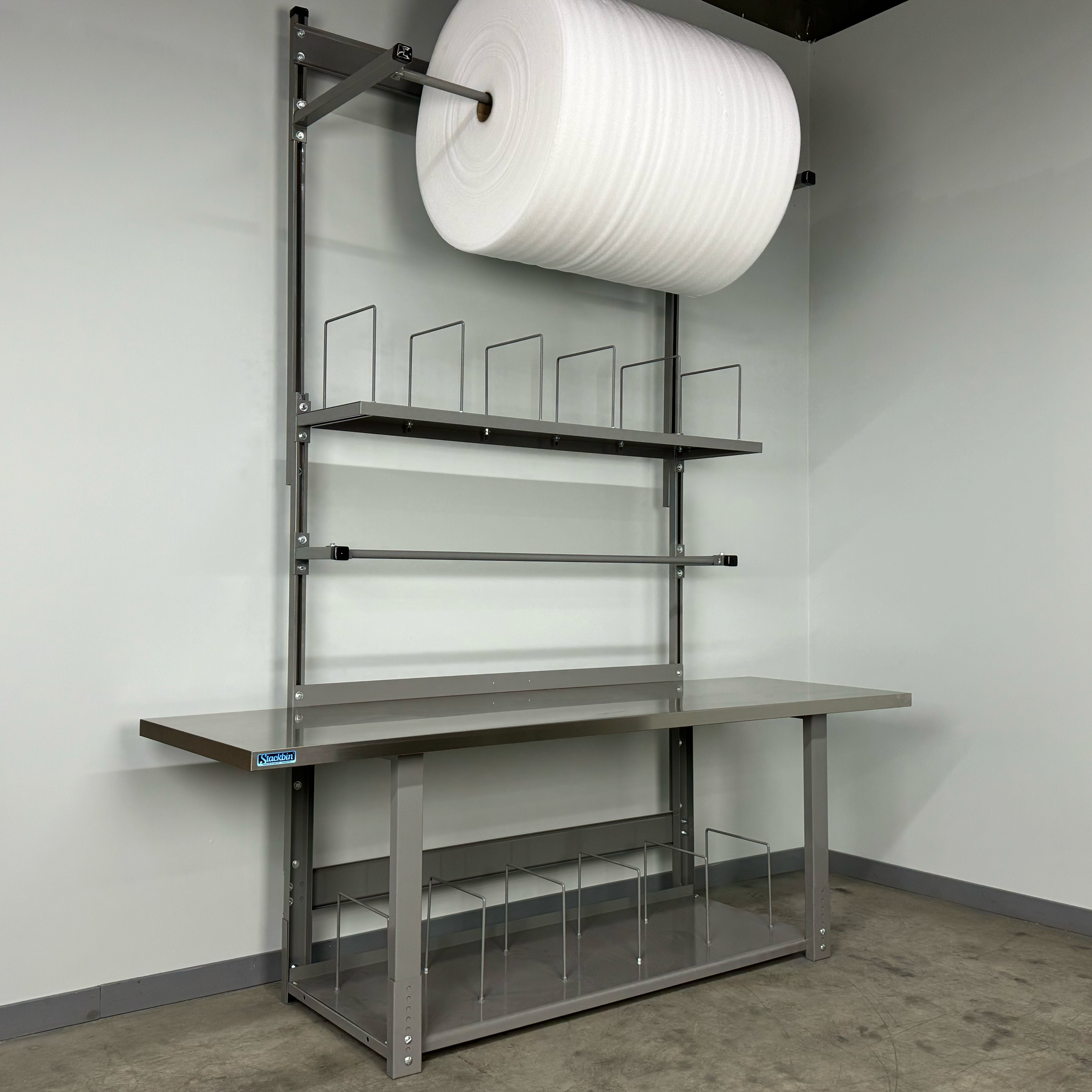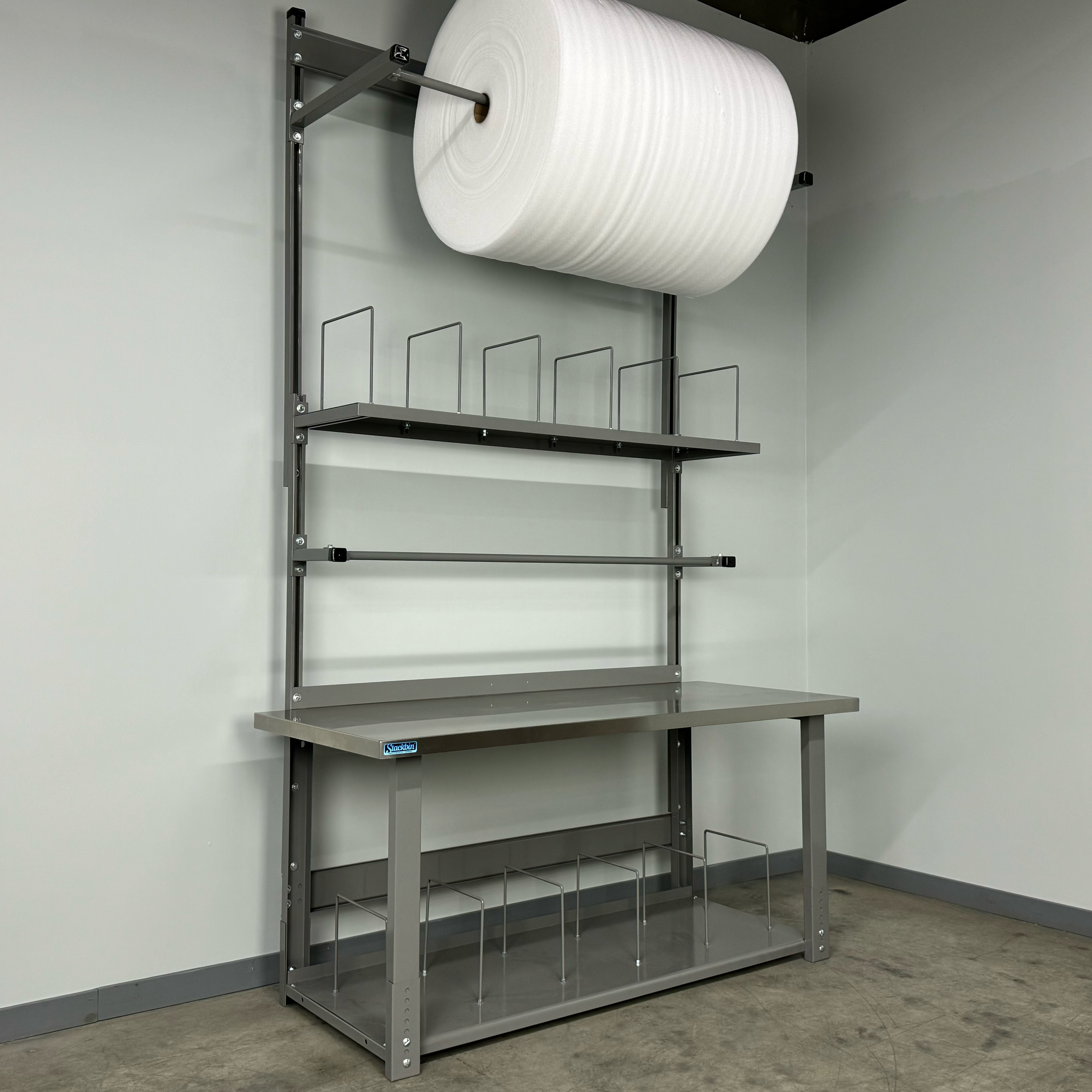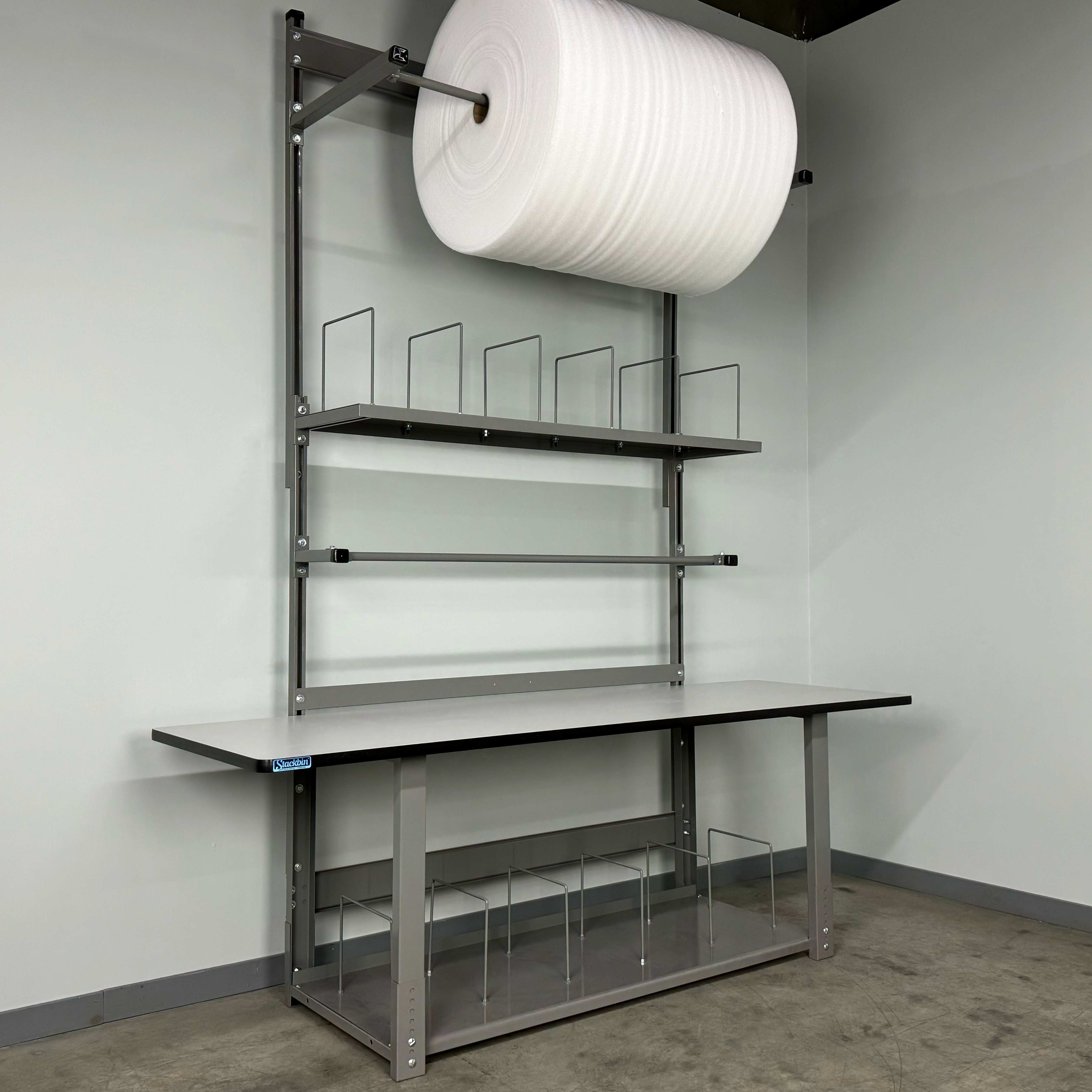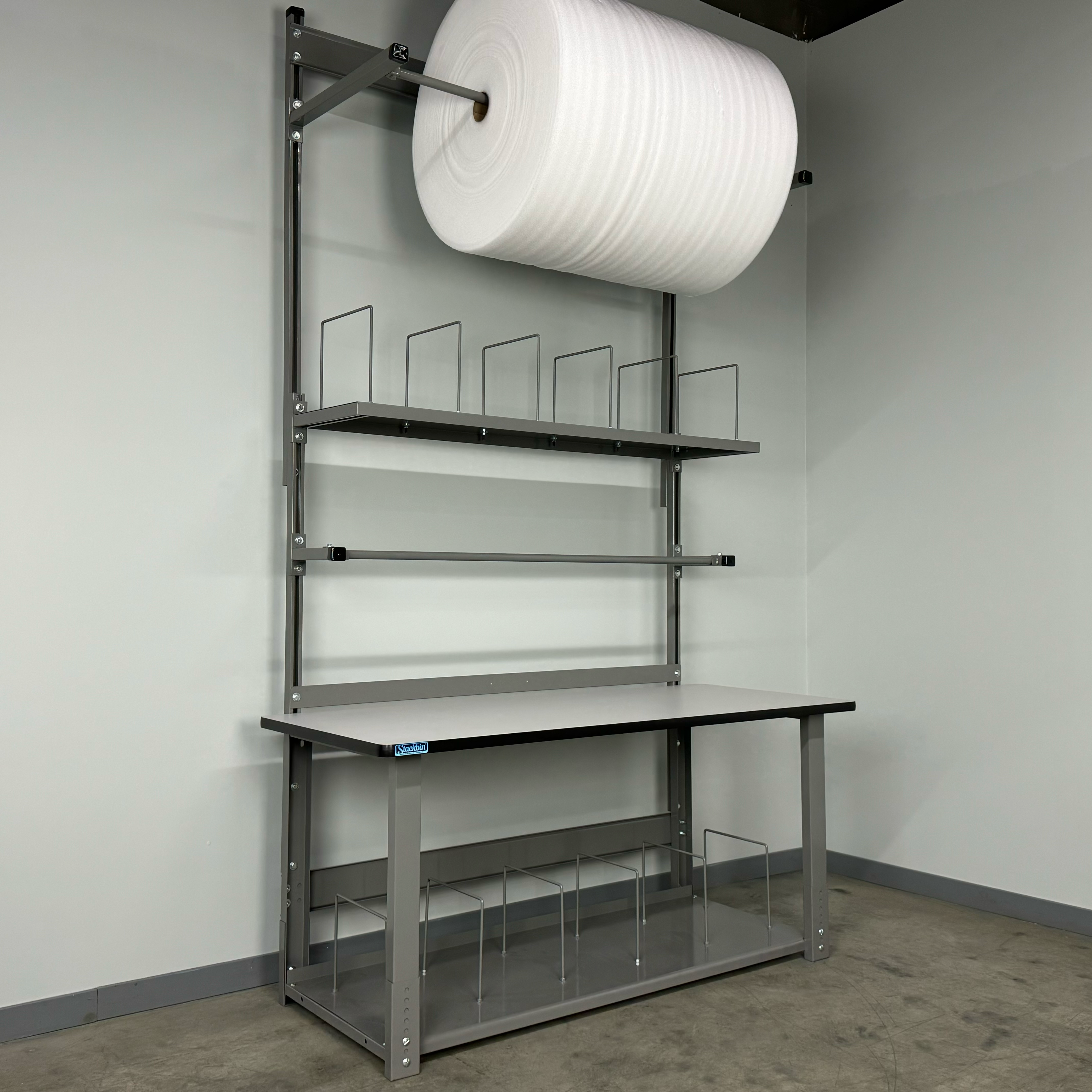 - Boost efficiency: Overhead organization and adjustable spool control reduce steps and speed up packing.