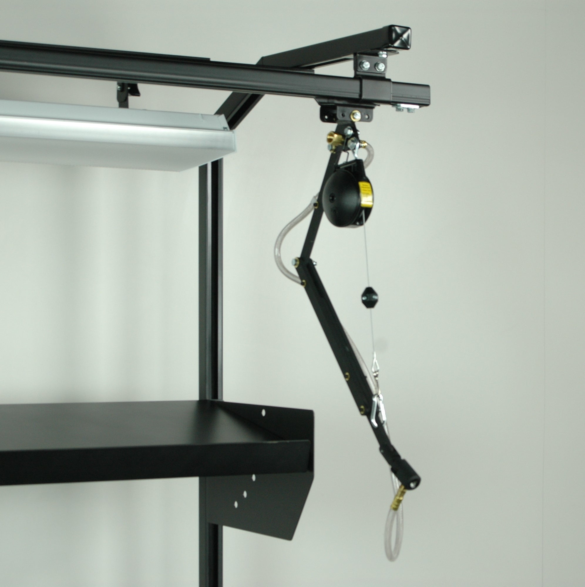 Ideal for industrial workbench environments, this arm integrates seamlessly with adjustable workbenches and custom workbench configurations from Stackbin. While not intended for stand-alone use, it complements a heavy duty workbench setup and can enhance mobility when paired with a Stackbin rolling work bench, mobile workbench, or portable workbench outfitted with the proper overhead track.