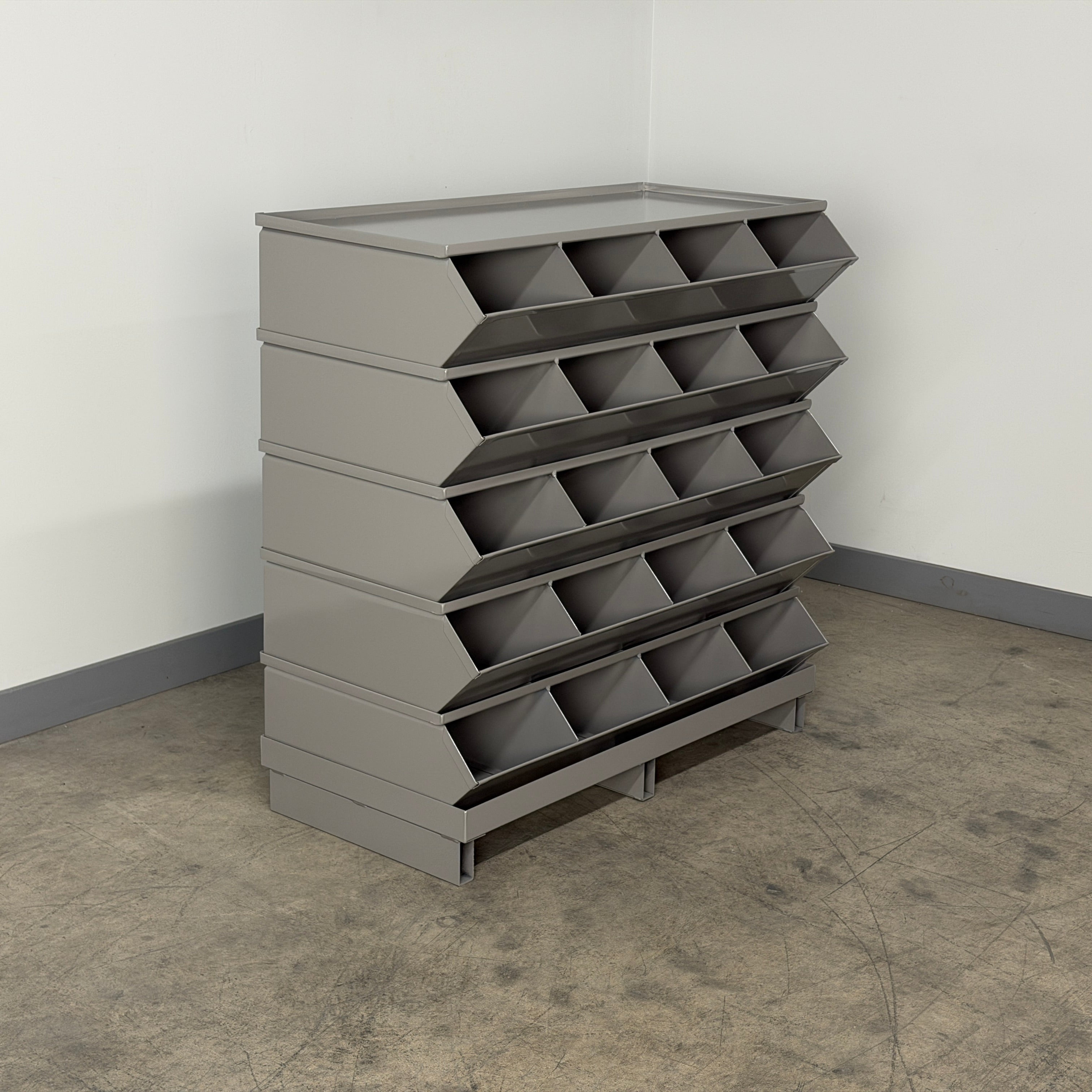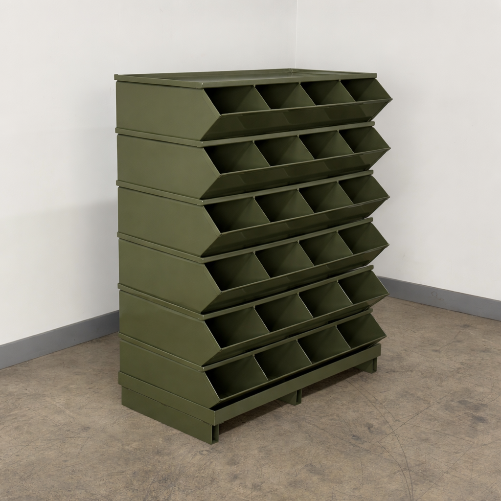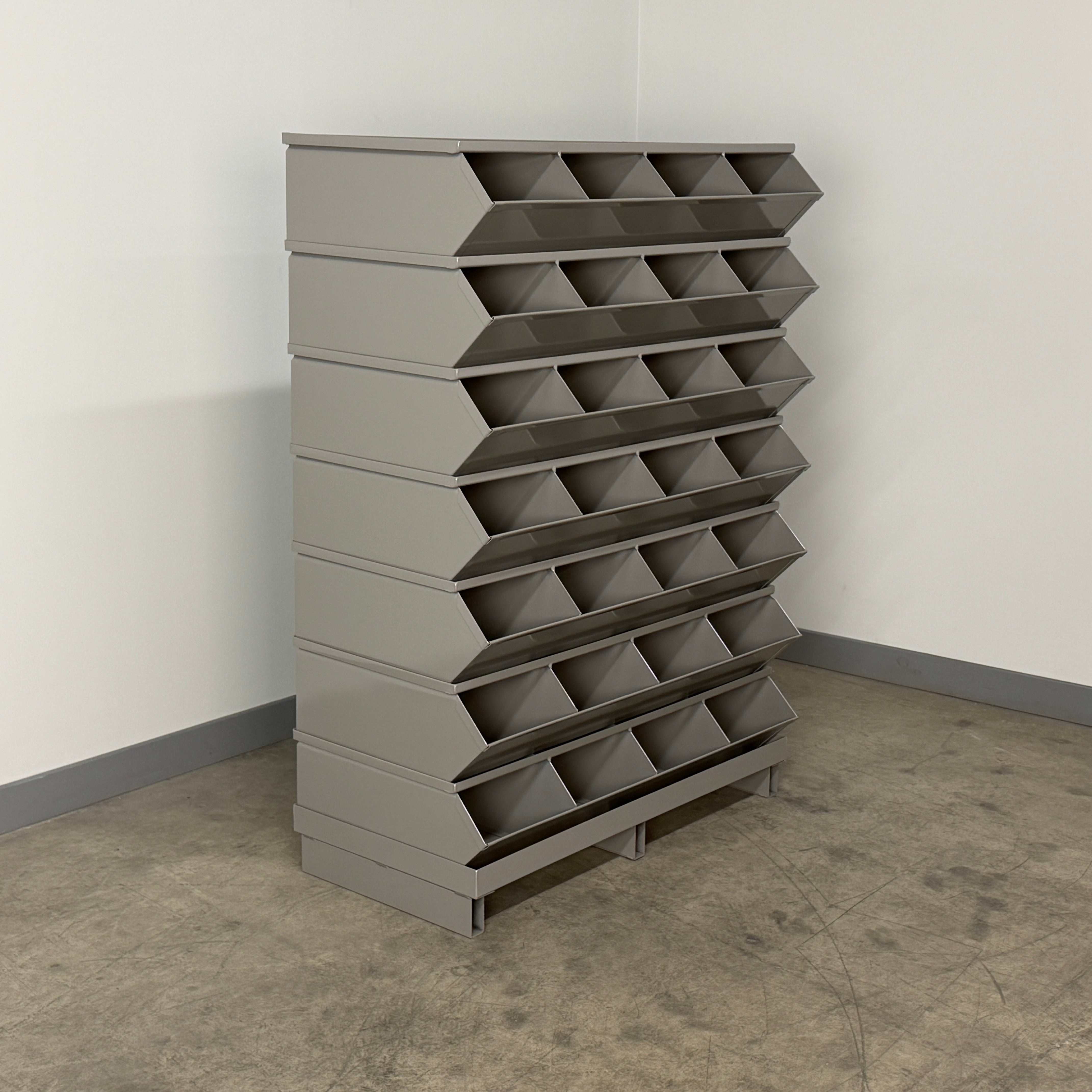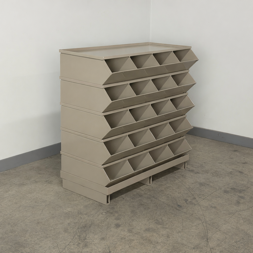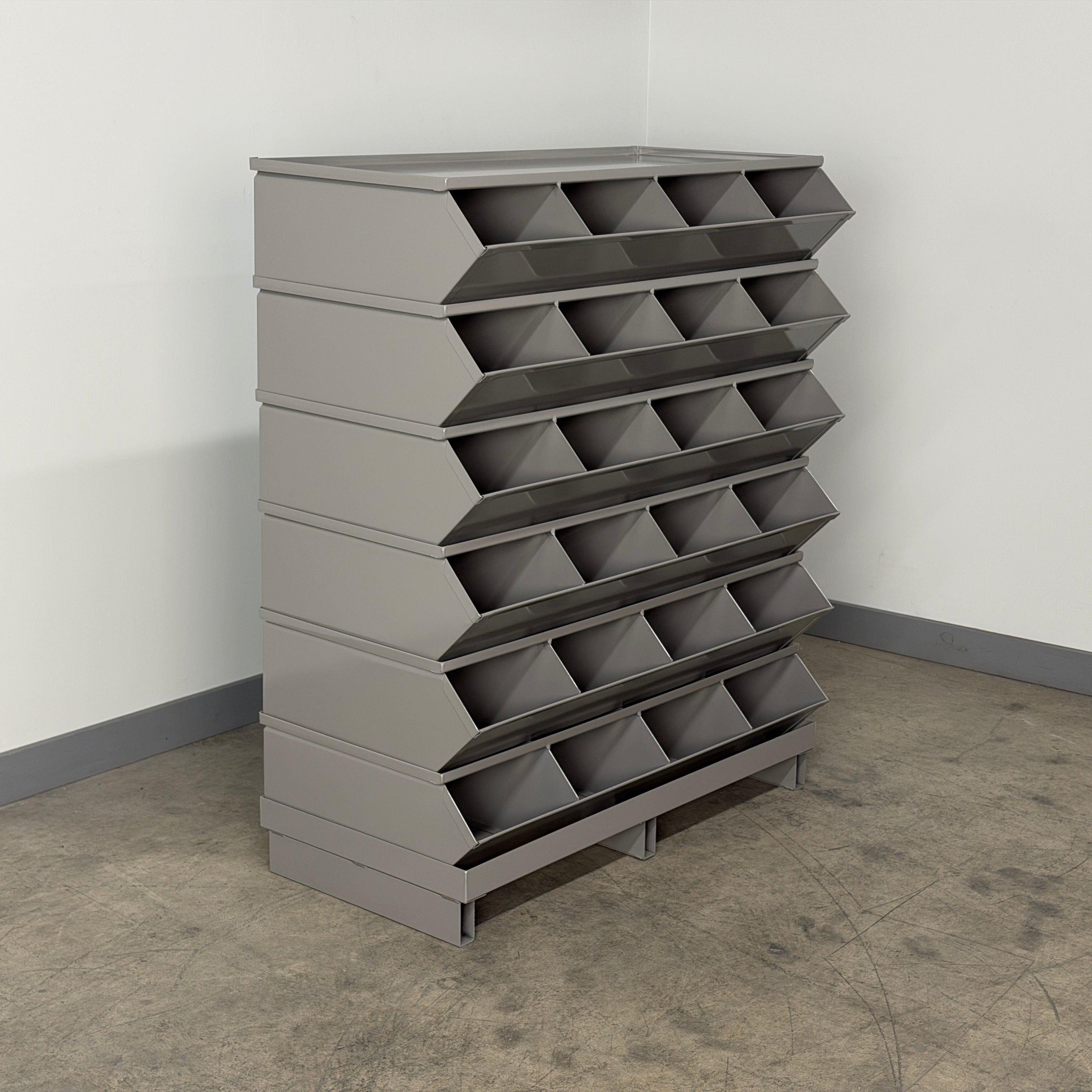 Built with durability in mind, these metal stacking bins offer the ultimate flexibility in parts bin organization. Each unit is sold by compartment quantity, and the innovative stacking design allows you to reconfigure your storage layout whenever your needs change. Perfect for warehouses, manufacturing facilities, and industrial operations requiring adaptable bin storage cabinet solutions.