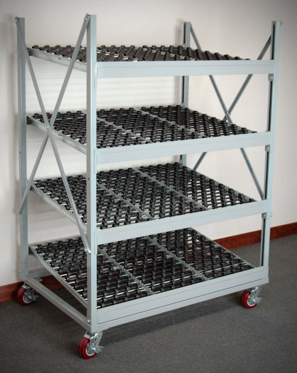 Stackbin 4-Shelf Mobile Flowrack with Conveyor Shelves