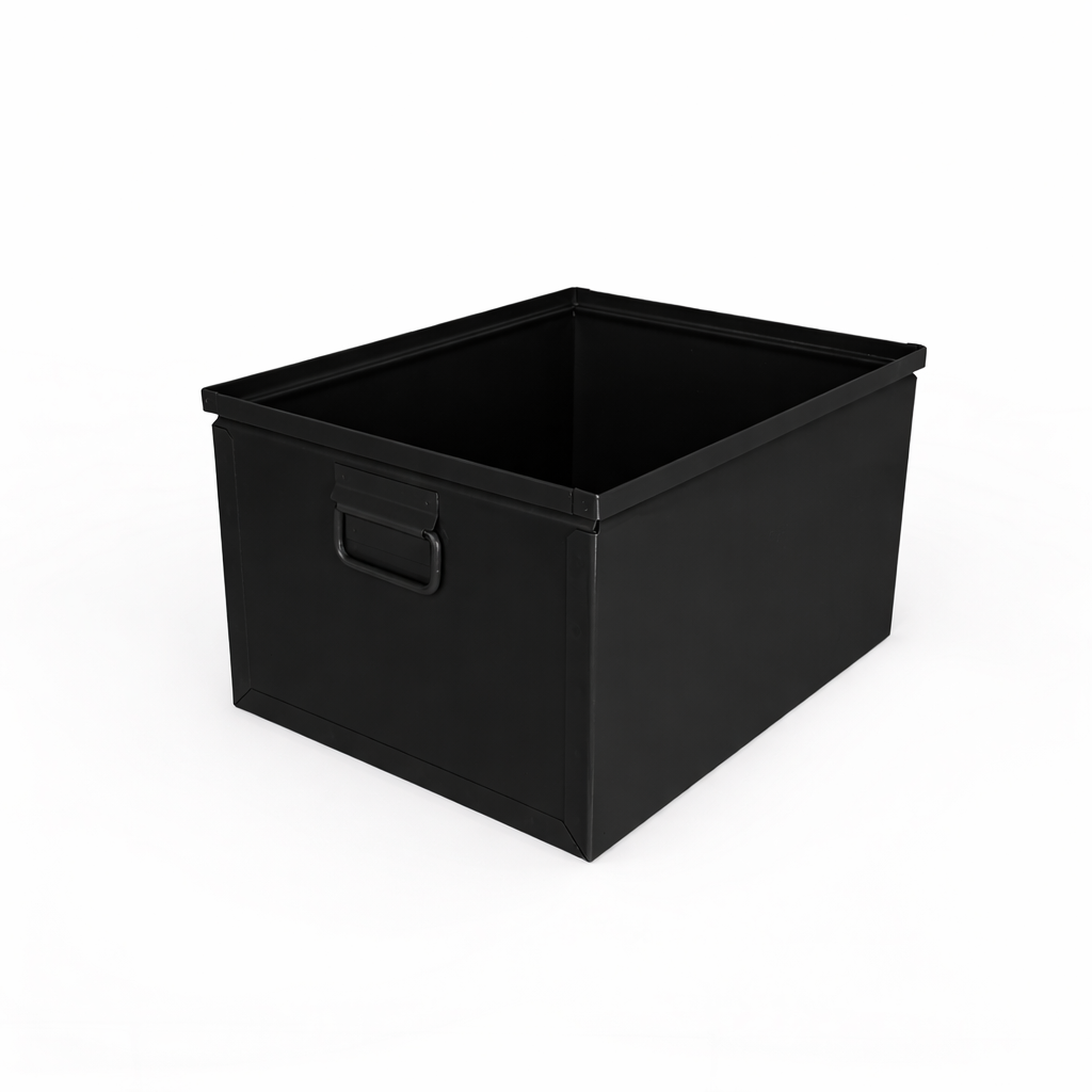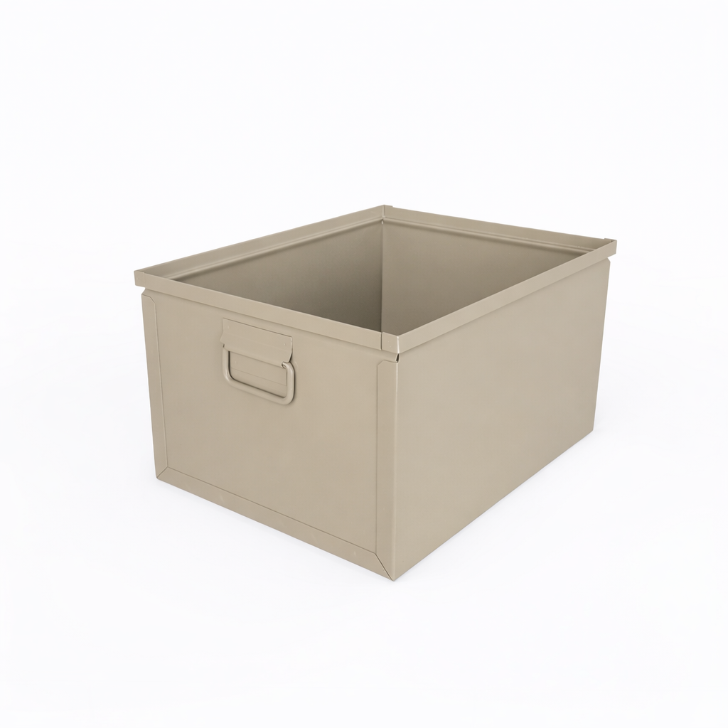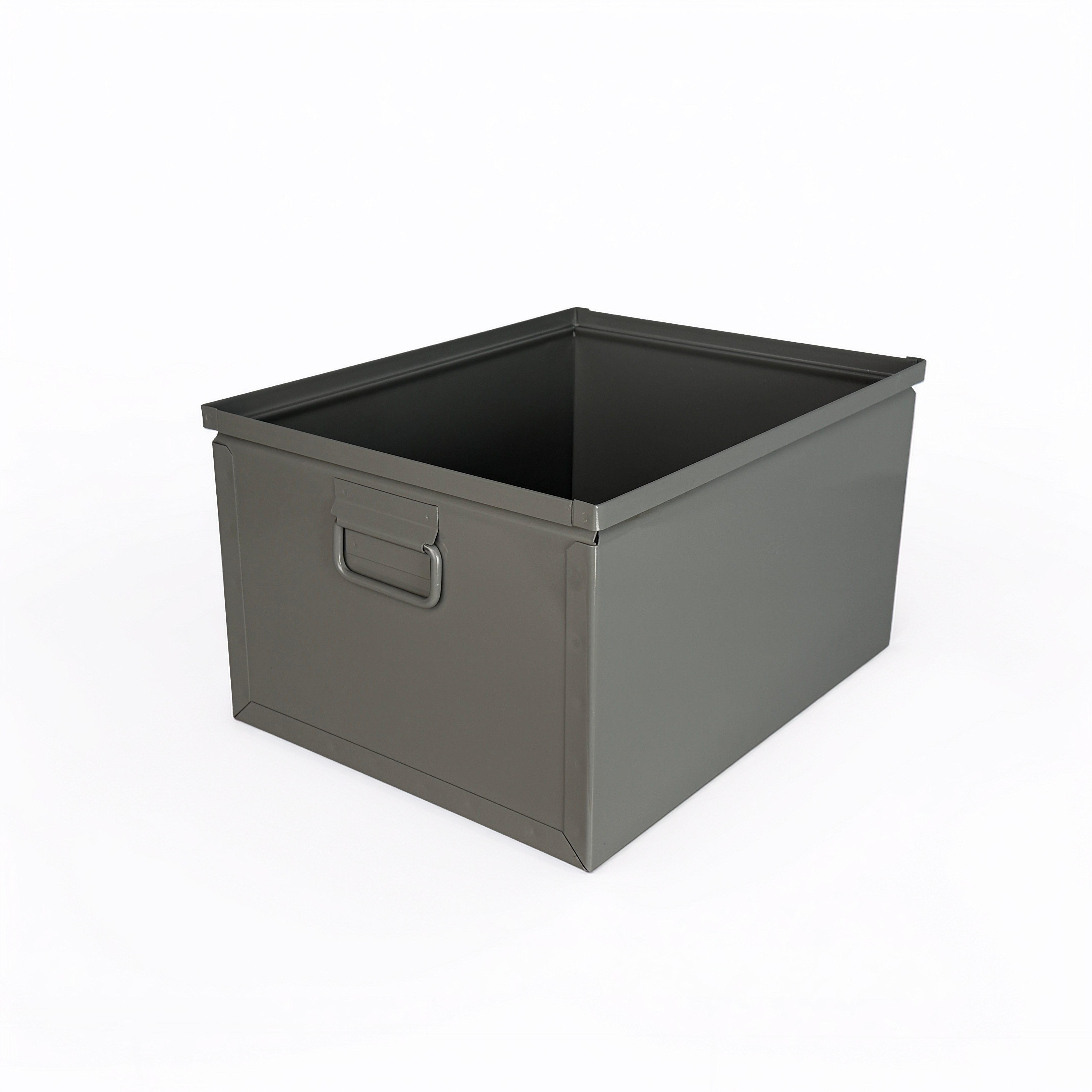 Built with the same robust construction standards as our popular Stackbin series, this stackable metal storage bin features convenient drop handles on both ends, making it ideal for transporting parts, tools, and materials throughout your facility. The solid front design provides enhanced protection for your stored items while maintaining the versatility you need for efficient small parts storage bins organization.
