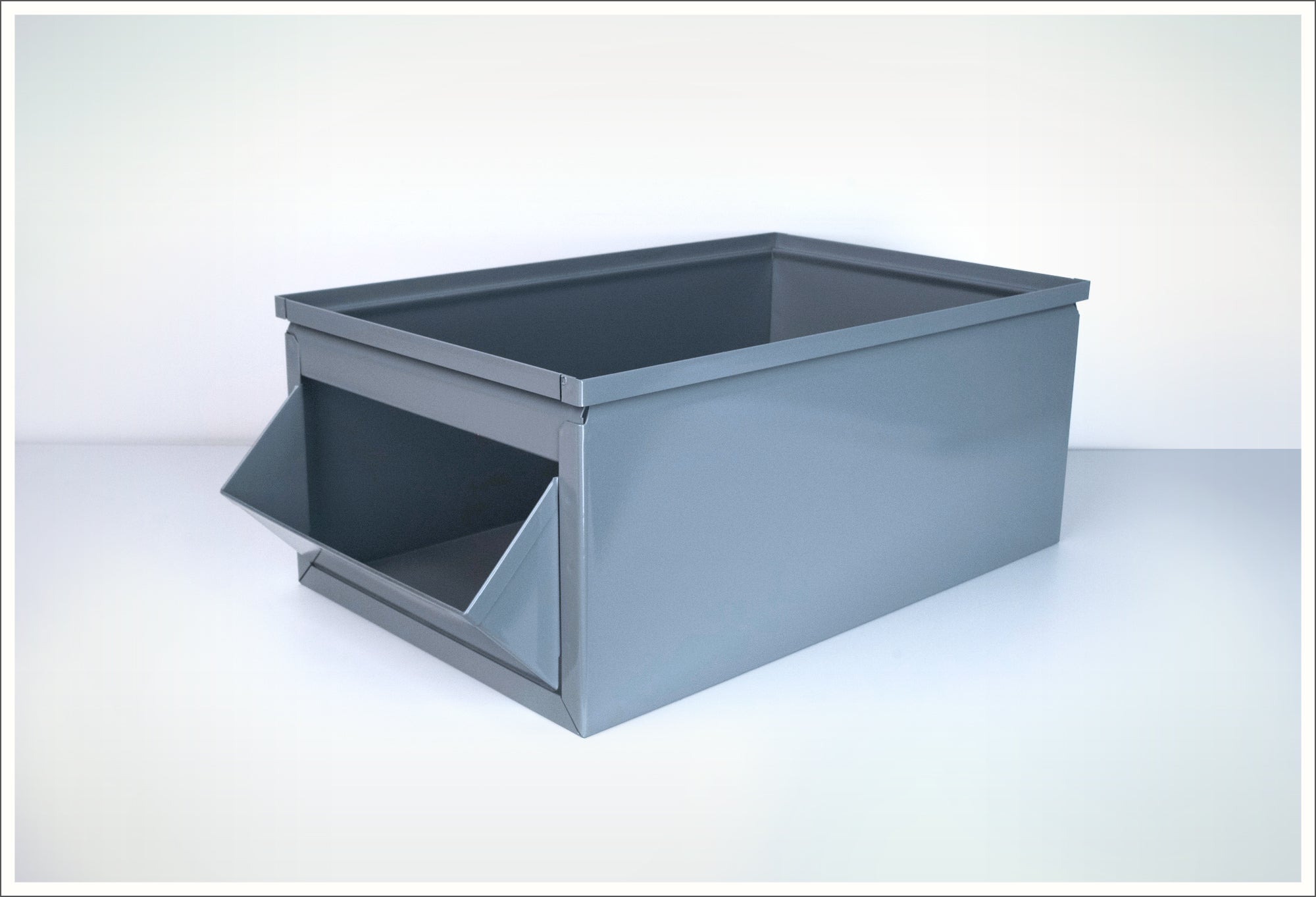 Upgrade your storage with durable metal stacking bins that are purpose-built for productivity. The #804 Series offers the strength of a steel bin with the convenience of an open-front metal hopper bin, making it a smart choice for any operation that depends on organized, accessible supplies. Also available in select finishes to complement stainless steel bin systems where needed.