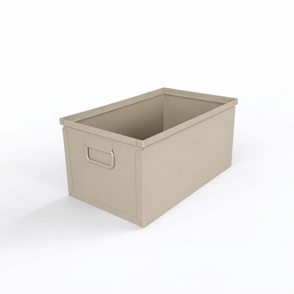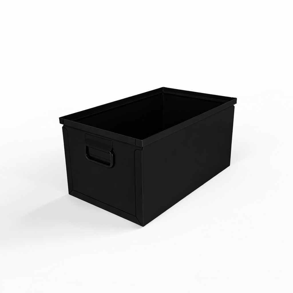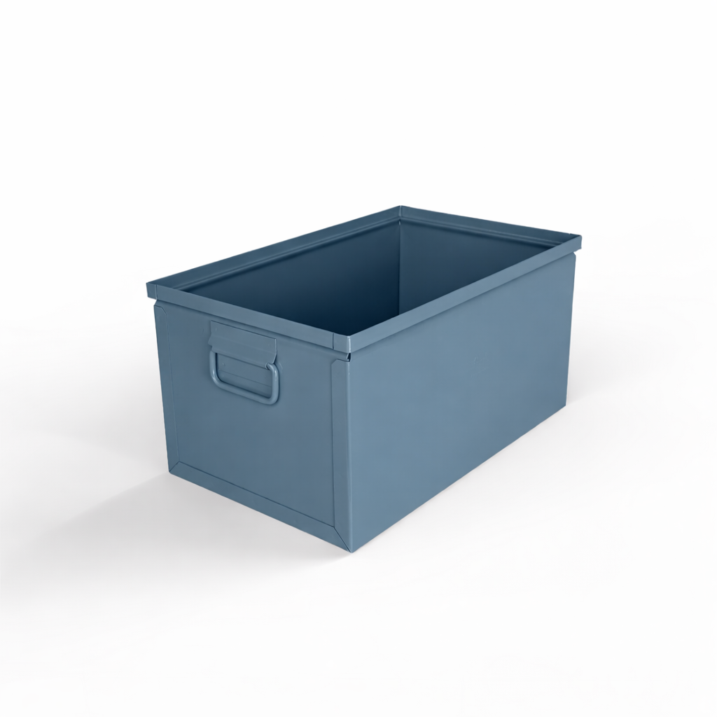 Built for demanding environments, these stackable metal storage bins include convenient drop handles on both ends, making them ideal for transporting tools, components, and materials throughout your facility. The ergonomic design ensures comfortable handling while maintaining the durability you need for heavy-duty applications.