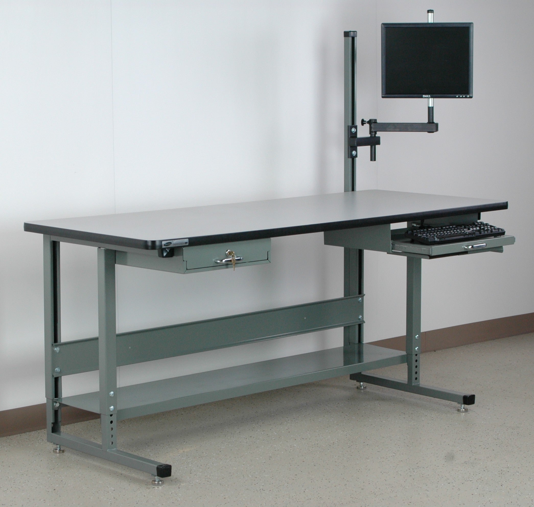 Stay organized with integrated storage, including a smooth roller-bearing drawer for quick access to tools, devices, and small parts. An articulating flat-screen monitor arm helps you position your display exactly where you need it, while the pull-out keyboard tray keeps your typing posture comfortable and your desktop clear.