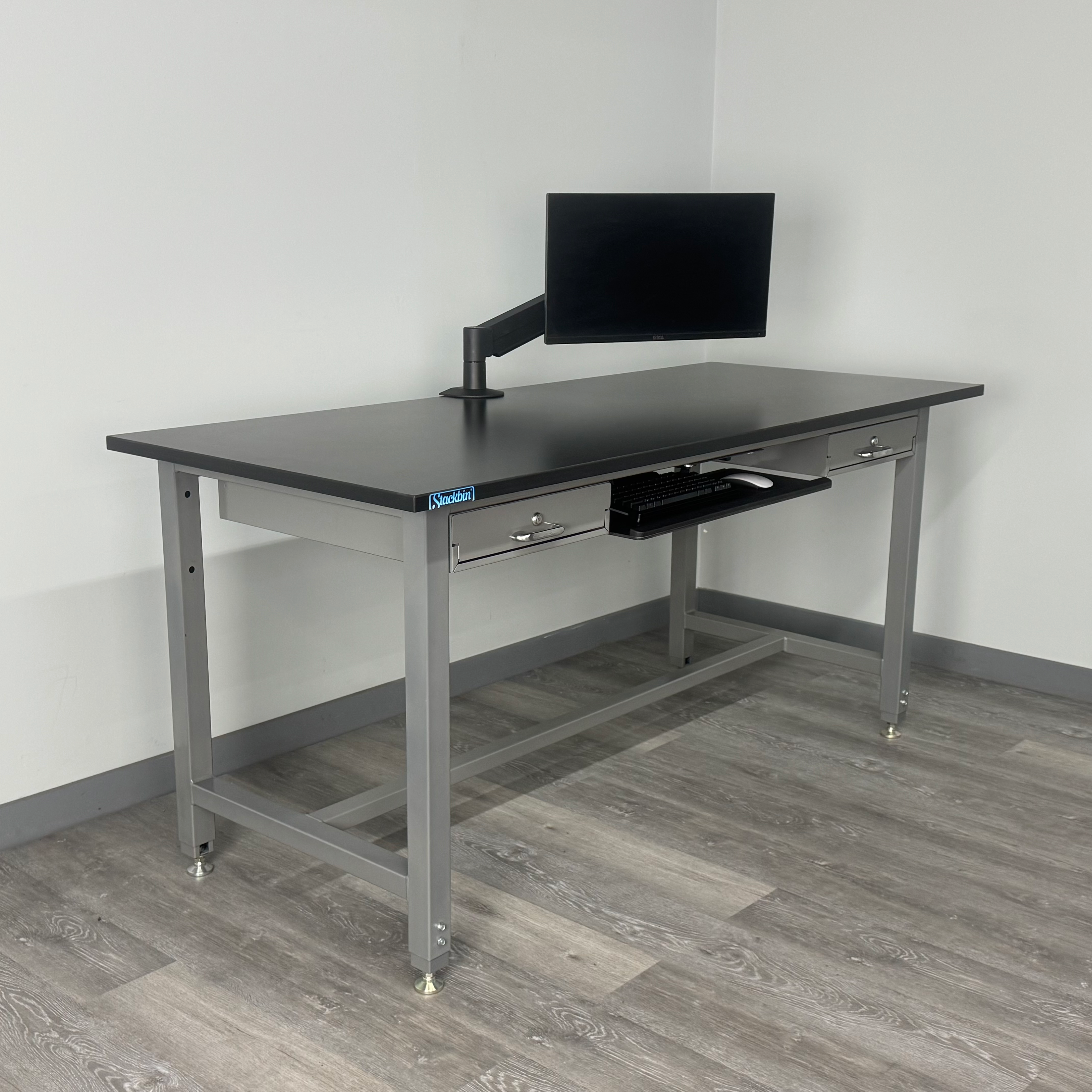 The lab-grade phenolic work surface is built to perform—resisting harsh chemicals, moisture, and impact—making this an ideal choice for precision work and data entry in controlled spaces. Integrated steel roller-bearing drawer units keep essential tools and supplies organized and within reach, enhancing workflow without clutter.