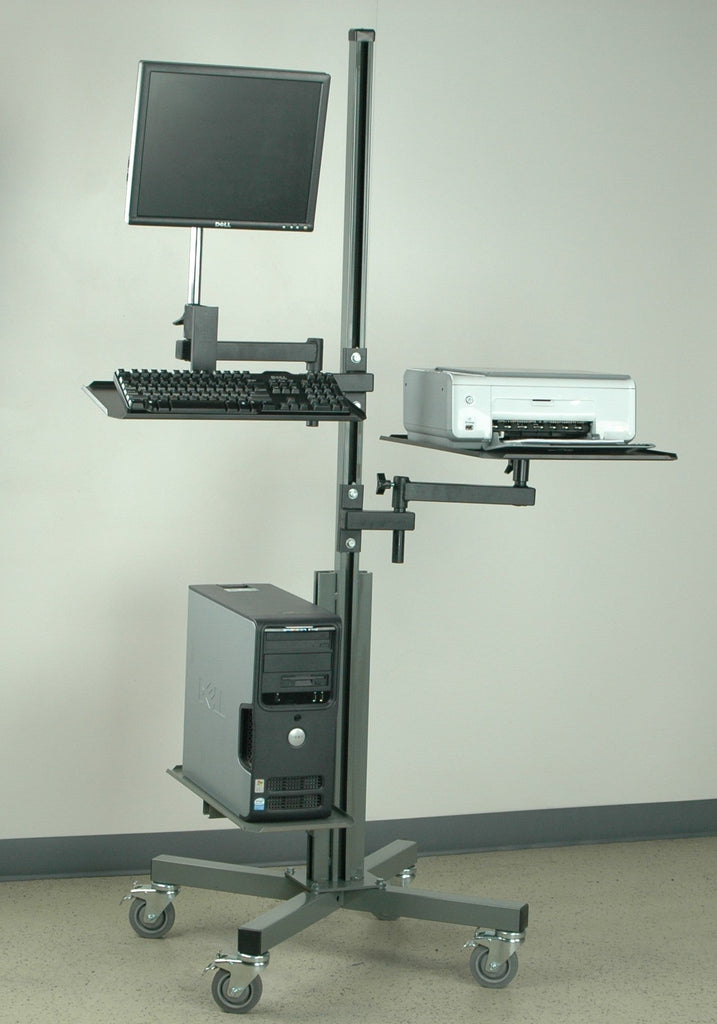 Mobile Steel Computer Tower with Monitor Arm and Printer Stand