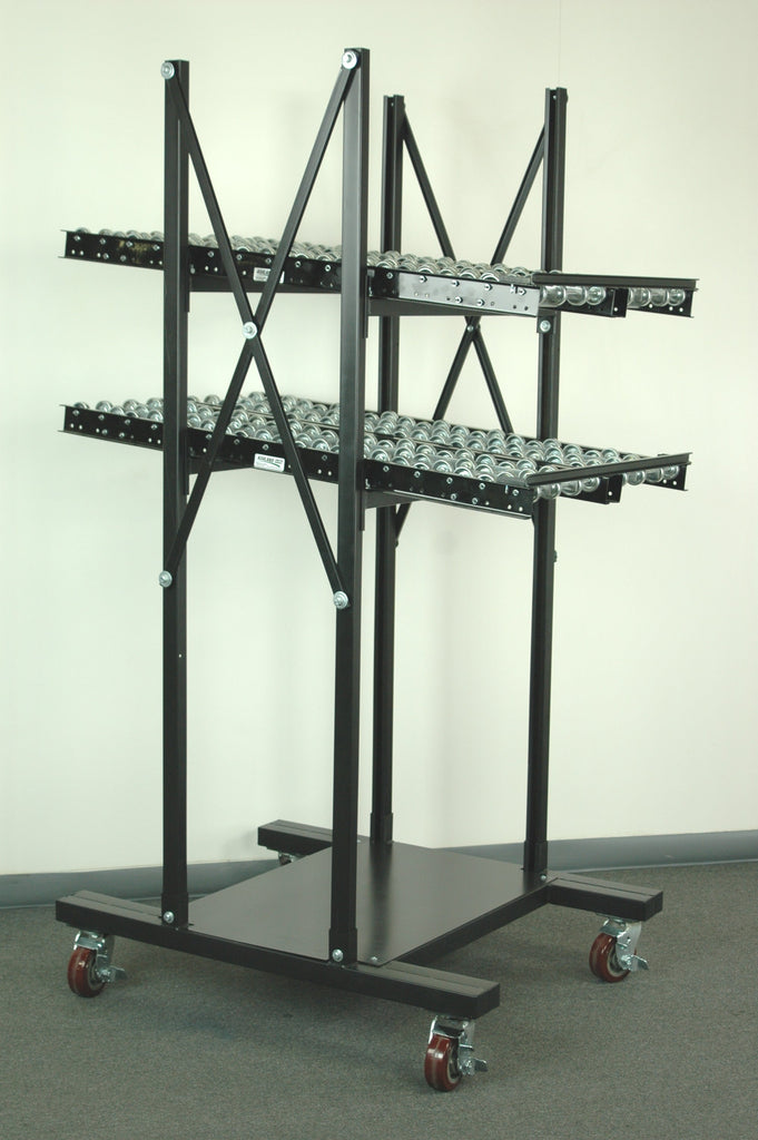 Maximize your workspace efficiency with this versatile two-level flow rack featuring 12" × 48" skate-wheel roller tracks. This heavy duty steel shelving solution combines durability with intelligent design, making it perfect for industrial applications where product accessibility is crucial.
